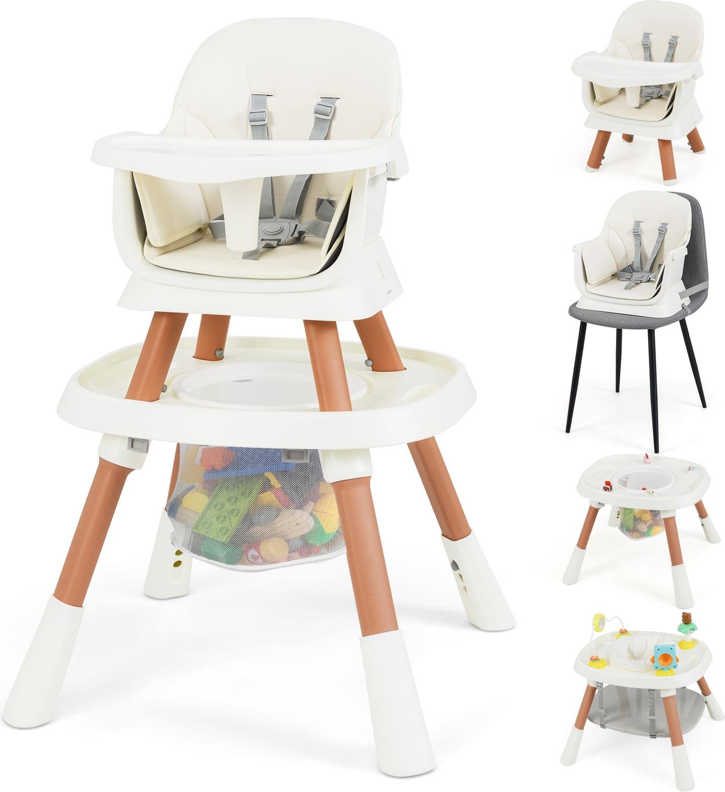 Costway 4 en 1 chaise haute convertible en table chaise, bébé chaise plateau 4 position réglable coussin amovible, chaise de table avec ceinture de sécurité à 5 points pour bébé 6 mois-3ans (gris)