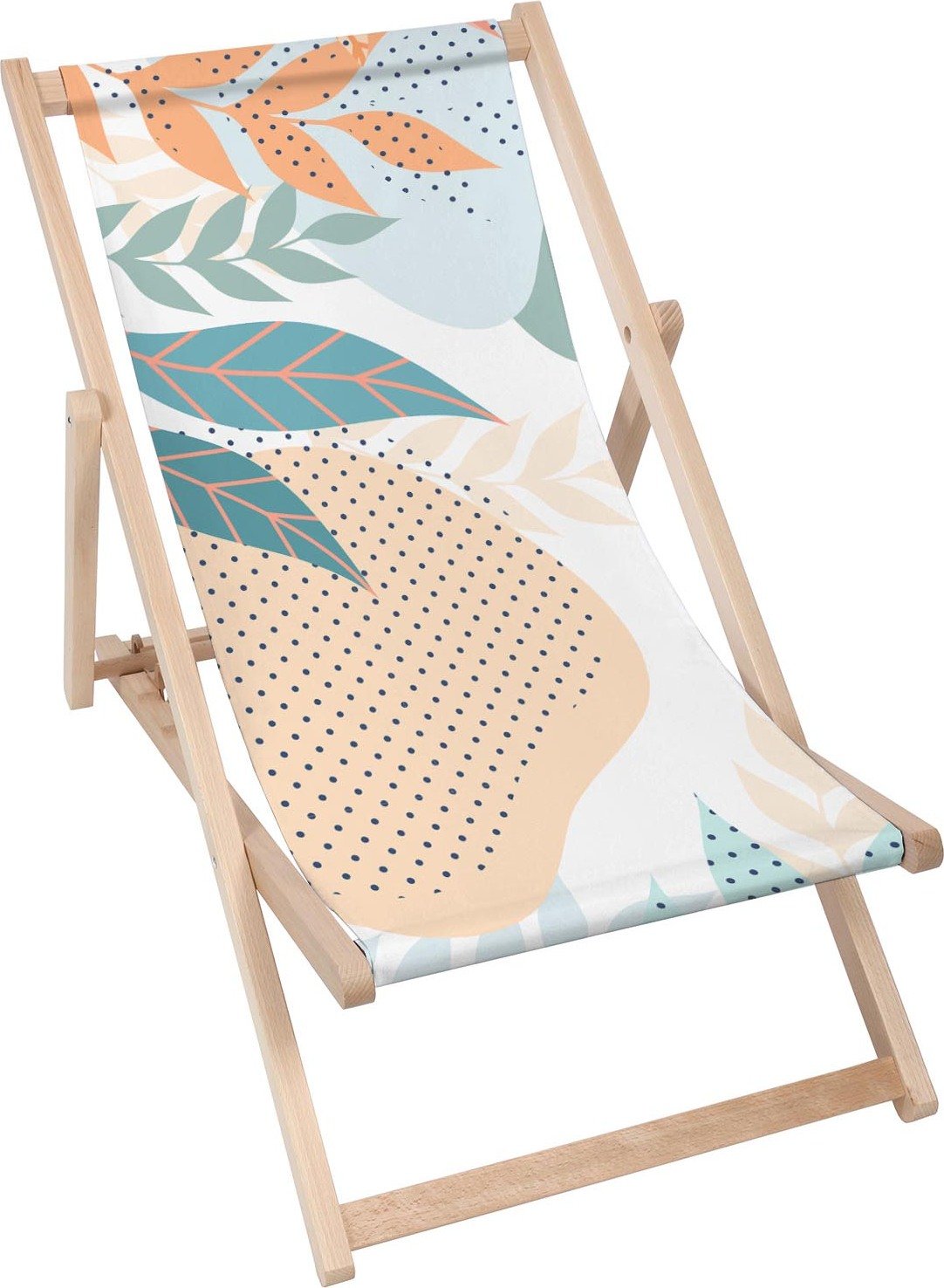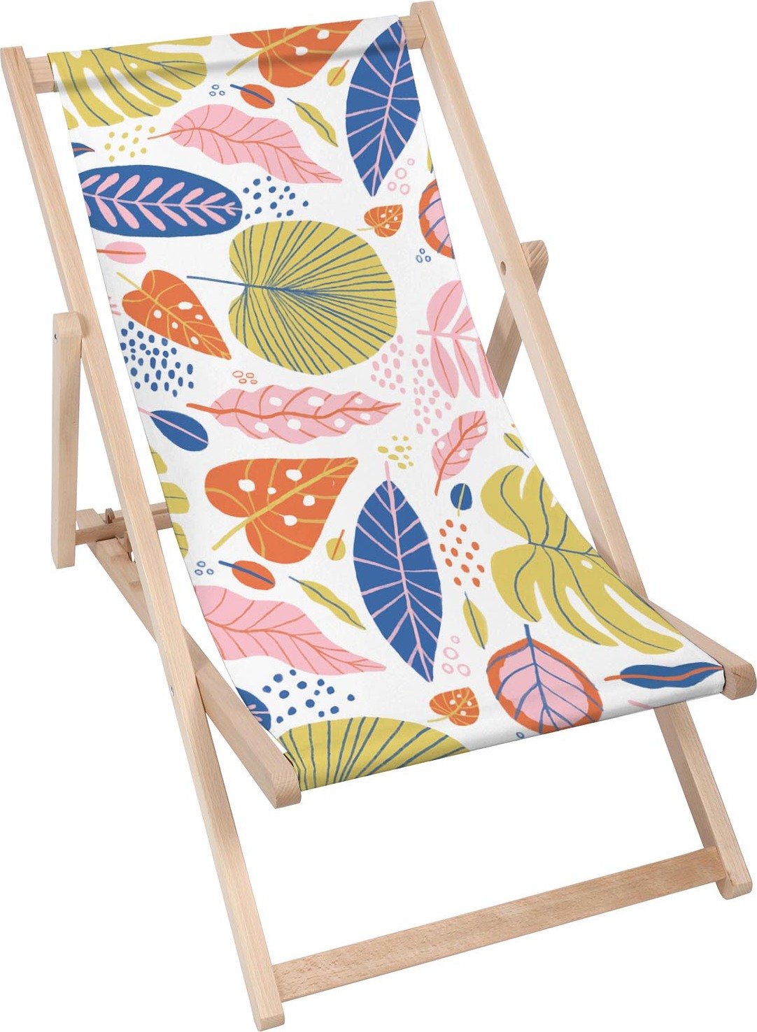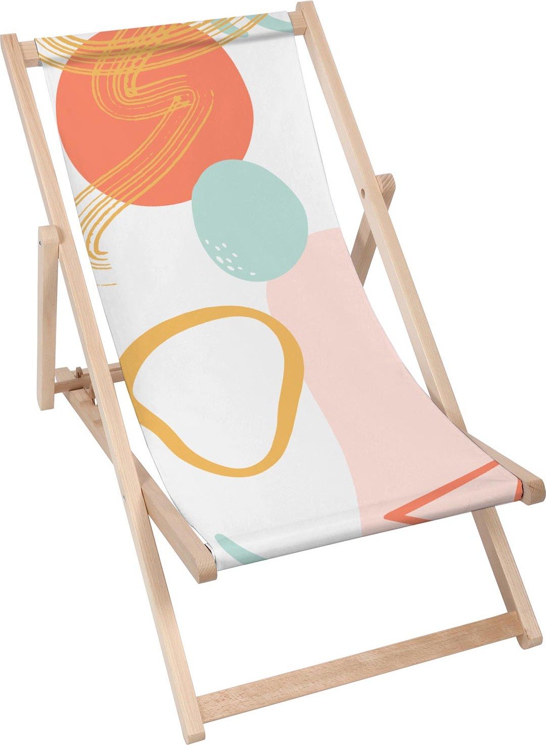 Dreamroots Chaise longue pliante bois, bois de hêtre jusqu'à 130 kg, Chaise longue pliante avec réglage de l'inclinaison du dossier en 3 positions, Colorful Shape