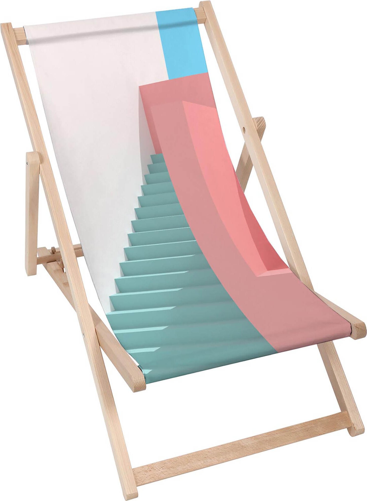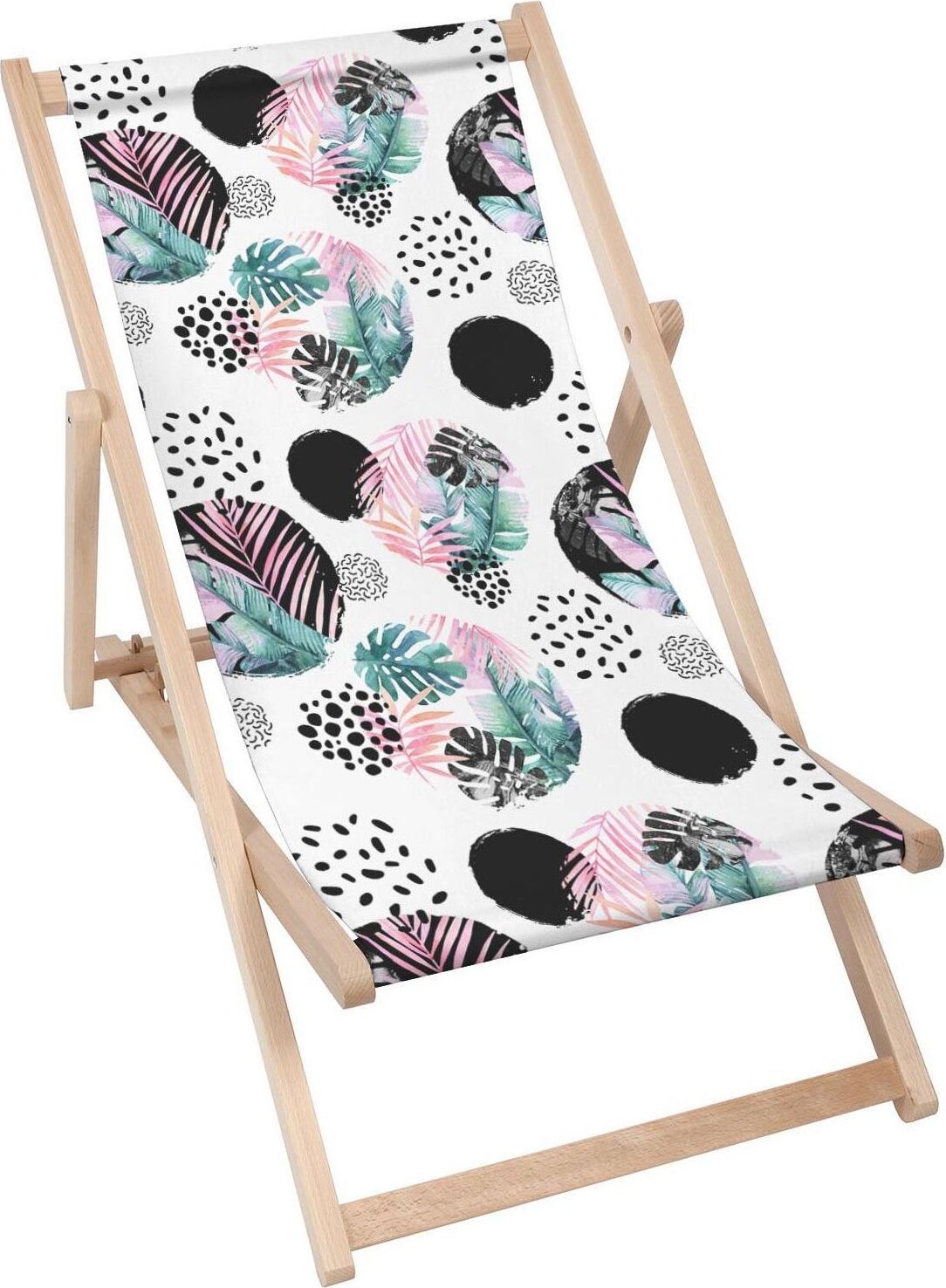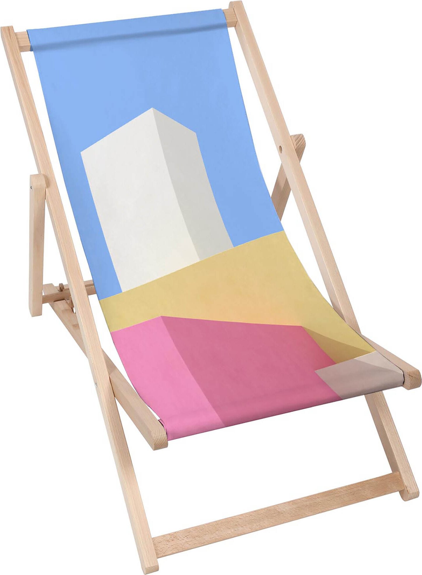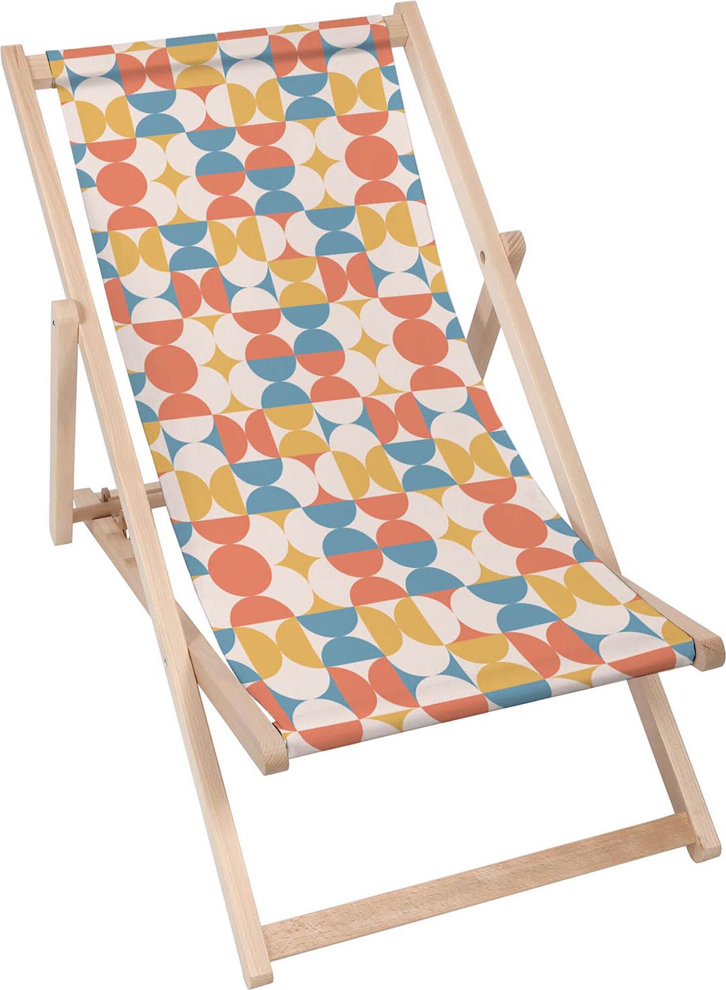 Dreamroots Chaise longue pliante bois, bois de hêtre jusqu'à 130 kg, Chaise longue pliante avec réglage de l'inclinaison du dossier en 3 positions, Colorful Shape