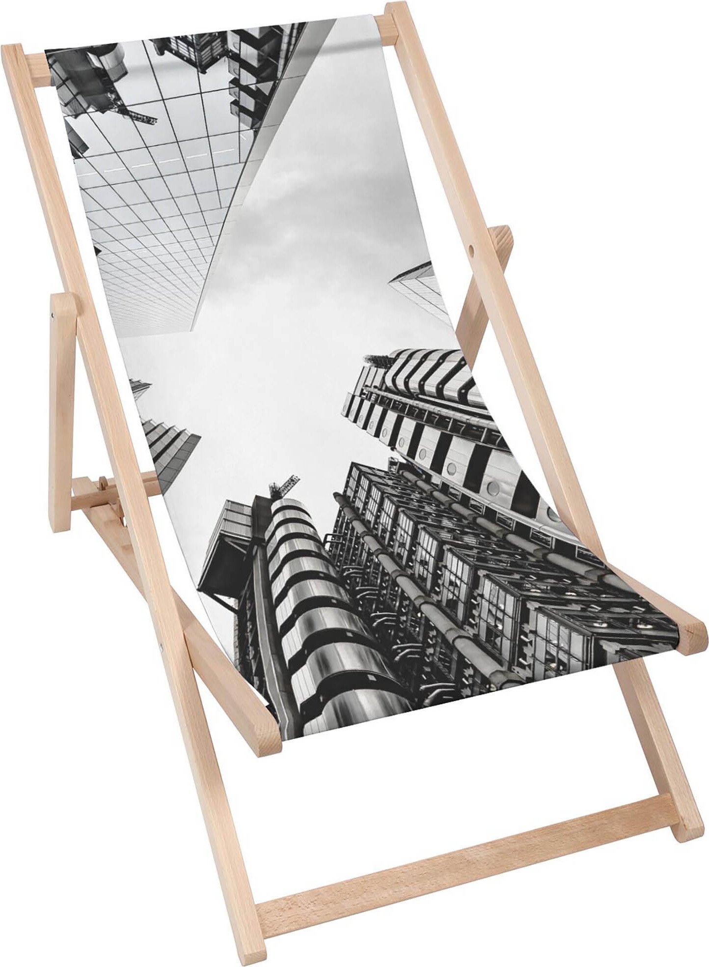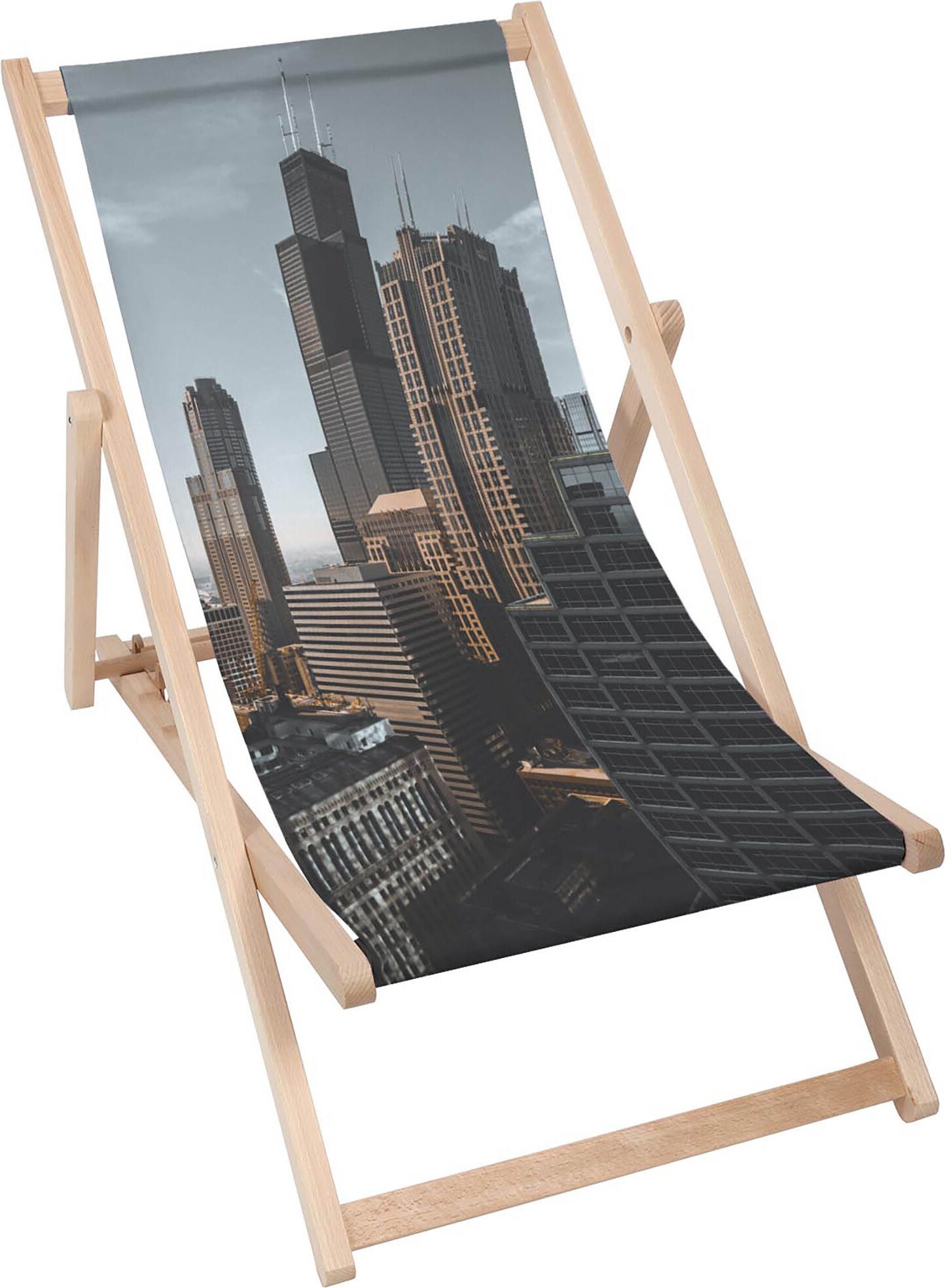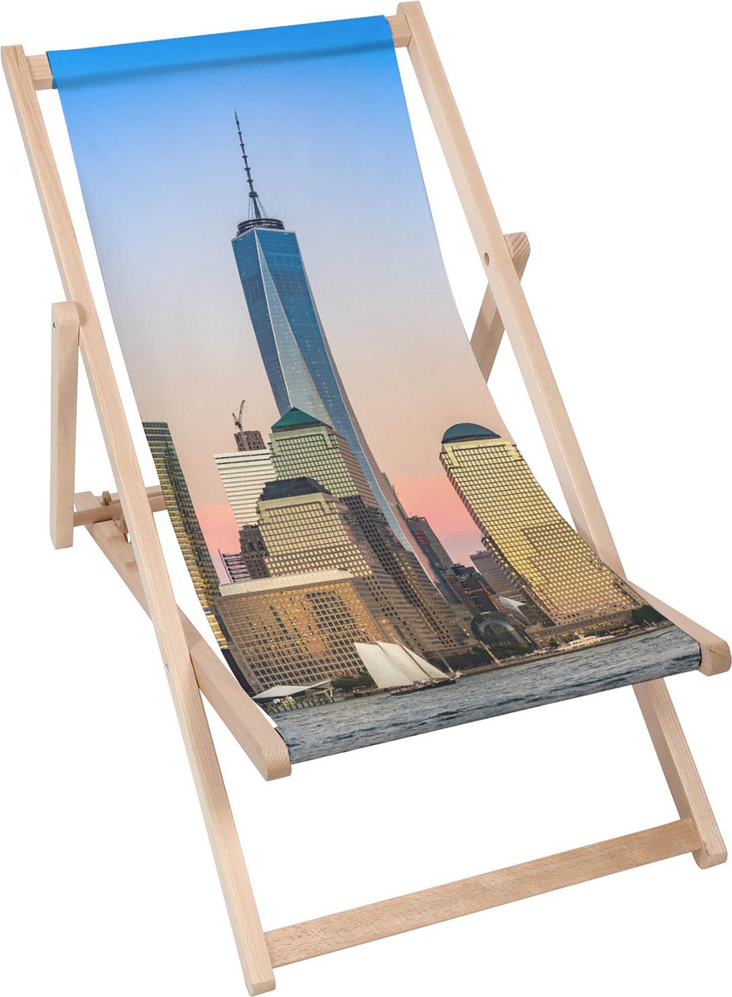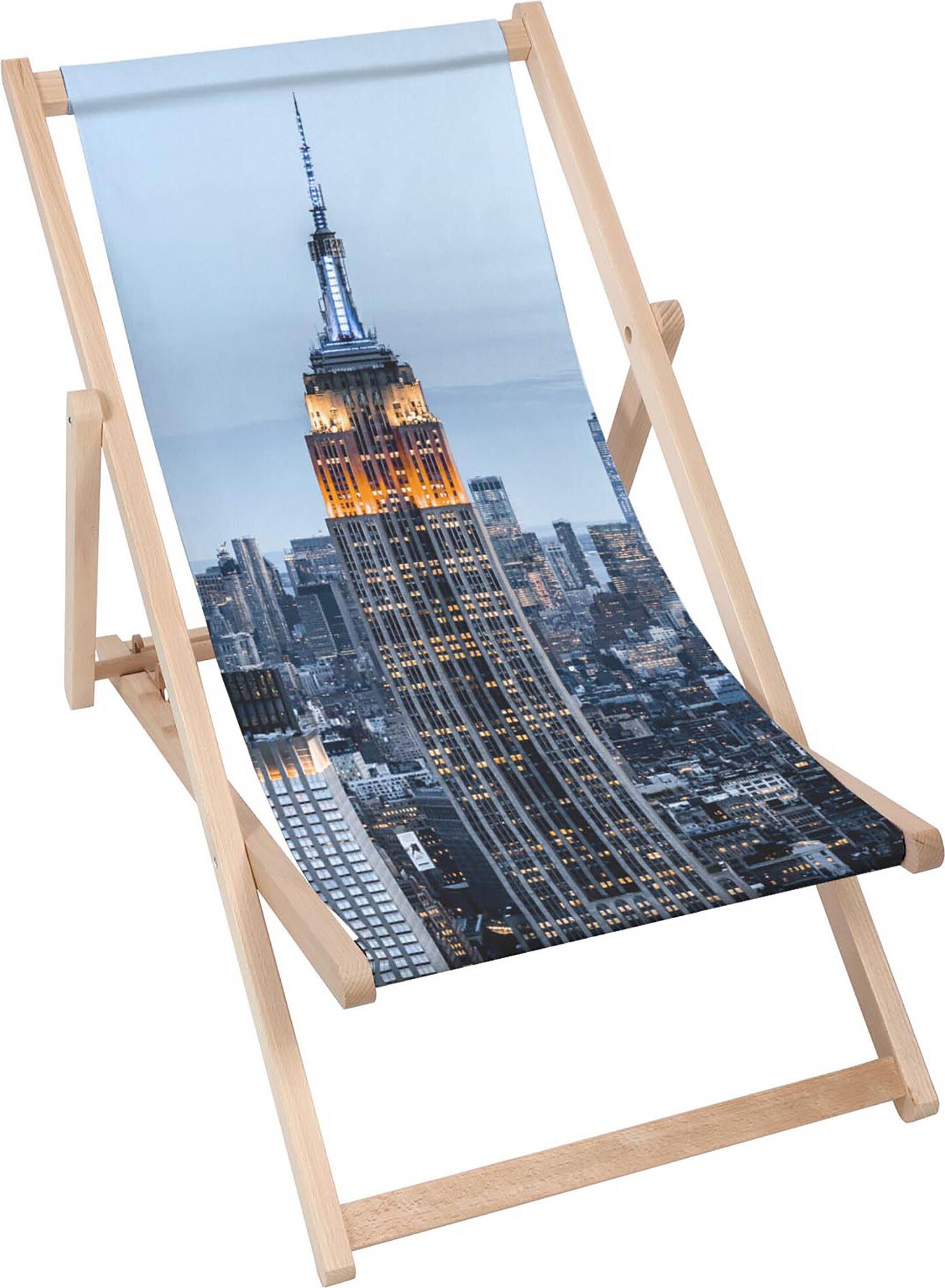 Dreamroots Chaise longue pliante bois, bois de hêtre jusqu'à 130 kg, Chaise longue pliante avec réglage de l'inclinaison du dossier en 3 positions, City Panorama
