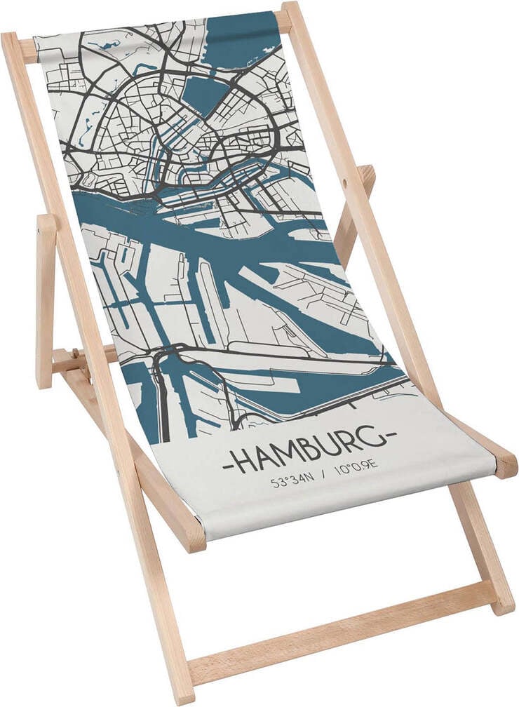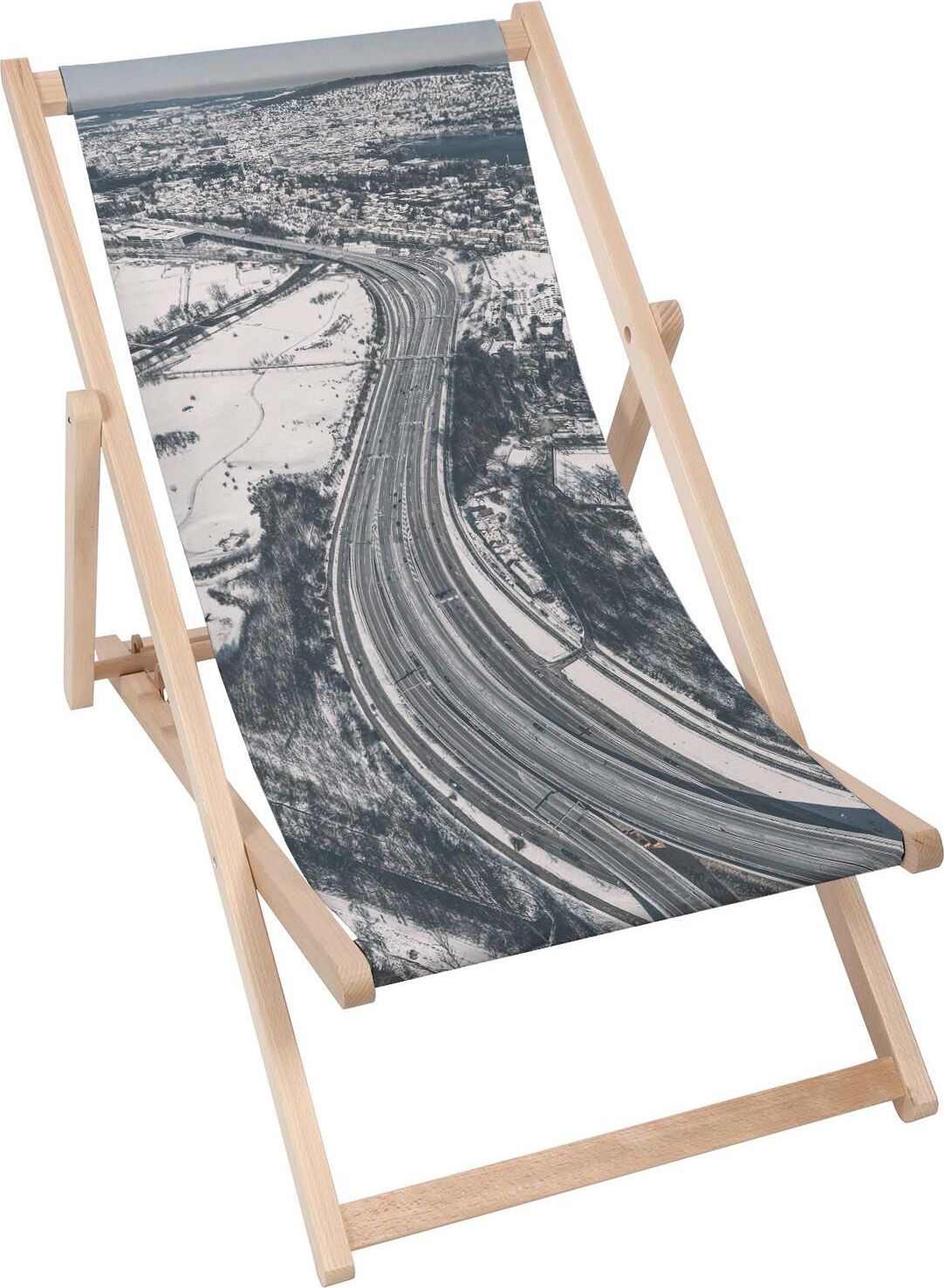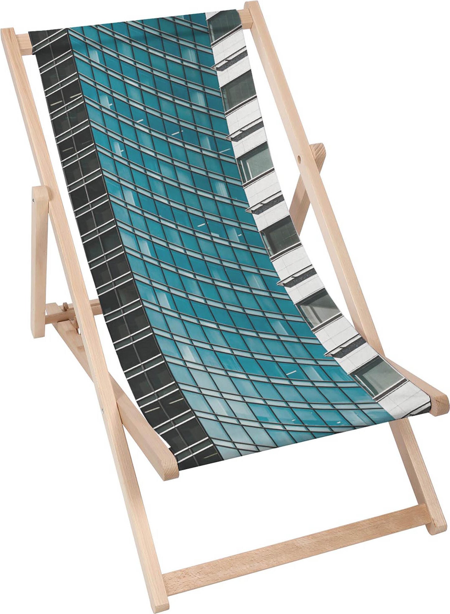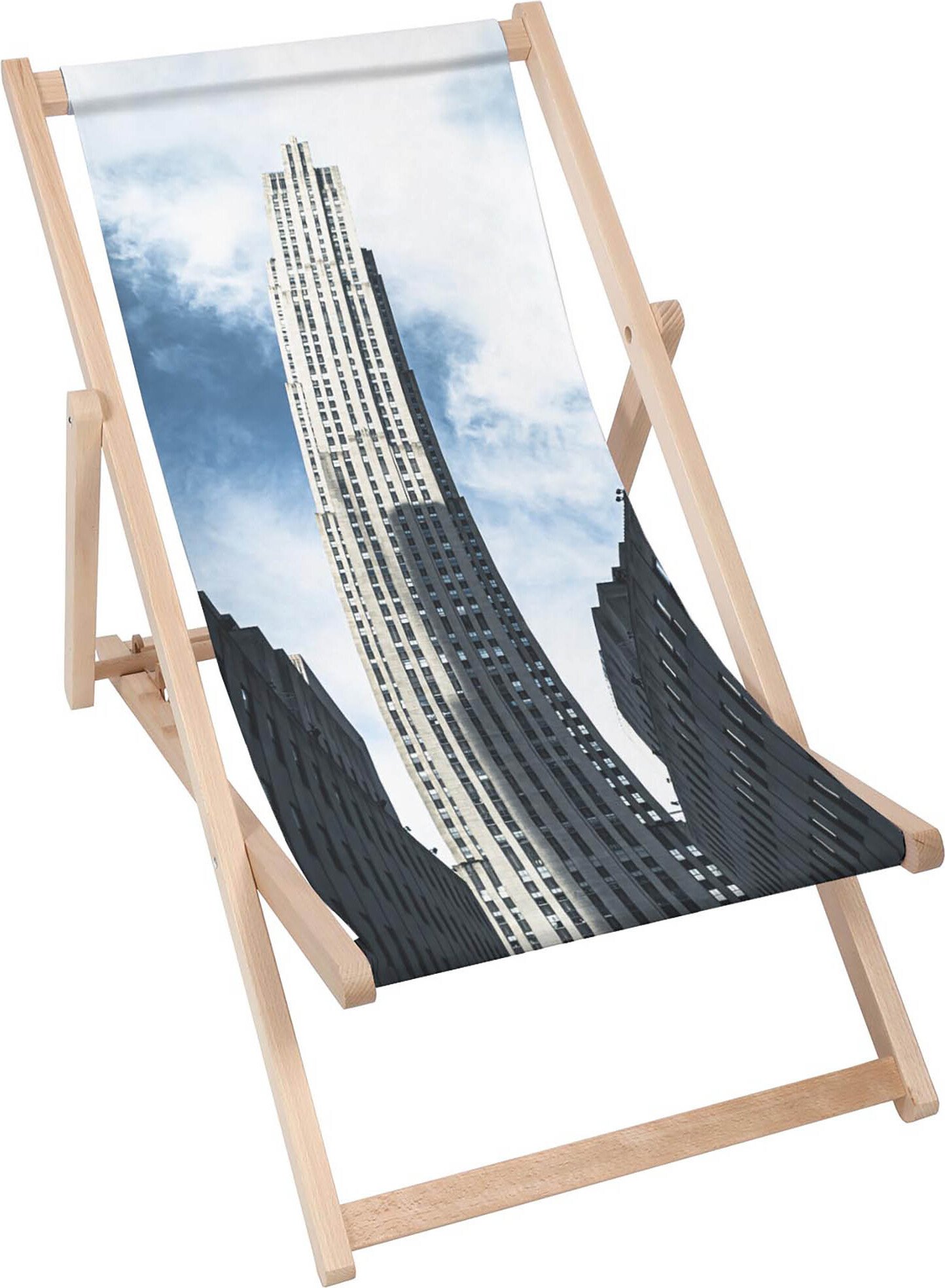 Dreamroots Chaise longue pliante bois, bois de hêtre jusqu'à 130 kg, Chaise longue pliante avec réglage de l'inclinaison du dossier en 3 positions, City Panorama