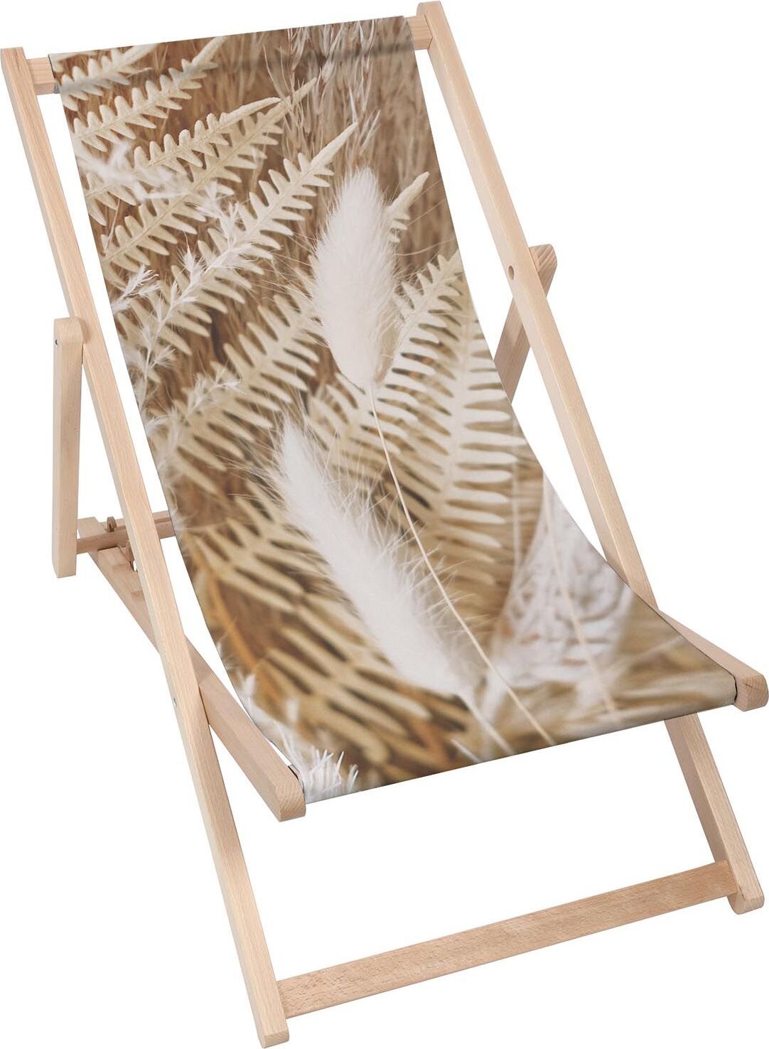 Dreamroots Chaise longue pliante bois, bois de hêtre jusqu'à 130 kg, Chaise longue pliante avec réglage de l'inclinaison du dossier en 3 positions, Boho Grass