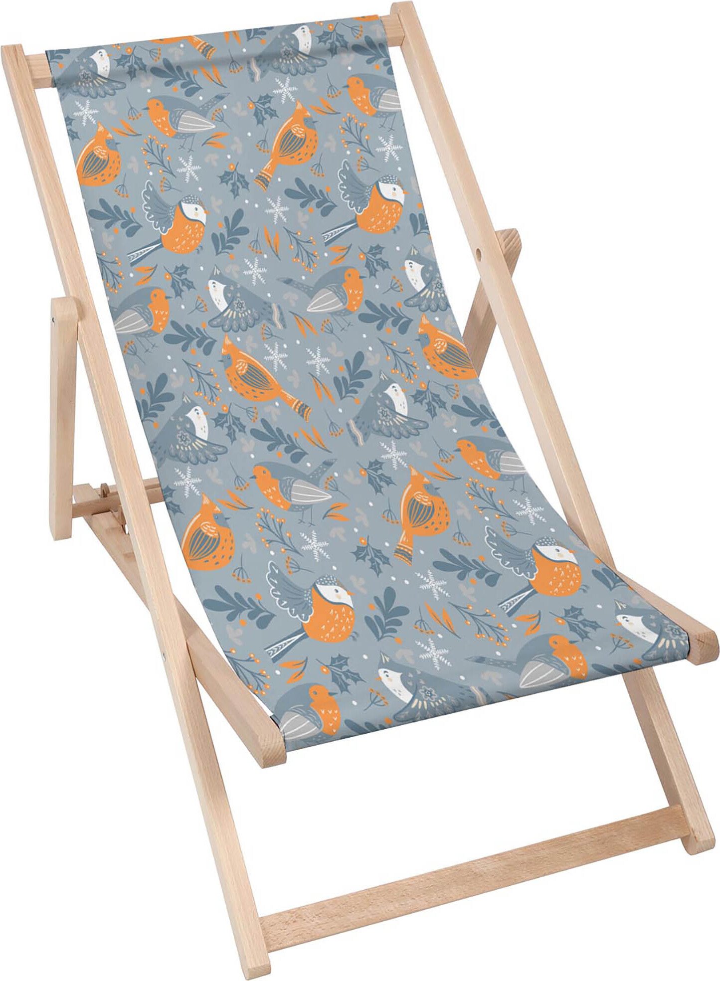 Dreamroots Chaise longue pliante bois jusqu'à 130 kg, Chaise longue pliante avec dossier inclinable en 3 positions, Birds And Floral Elements