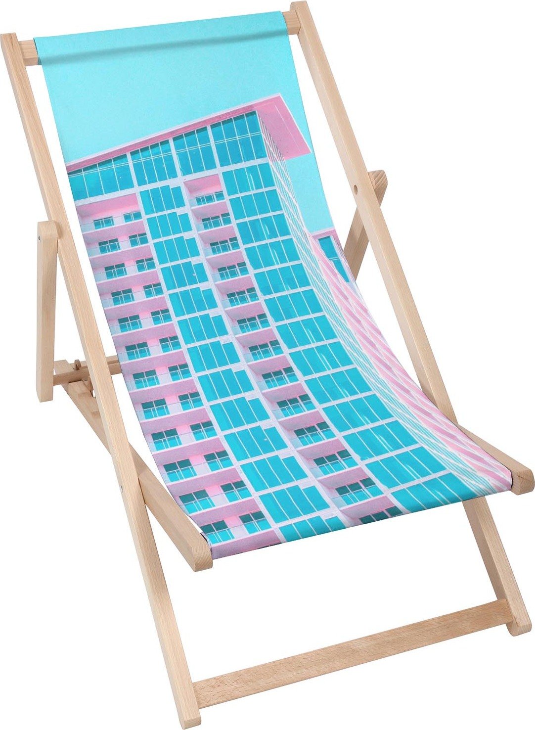 Dreamroots Chaise longue pliante bois jusqu'à 130 kg, Chaise longue pliante avec dossier inclinable en 3 positions, Colorful Architecture