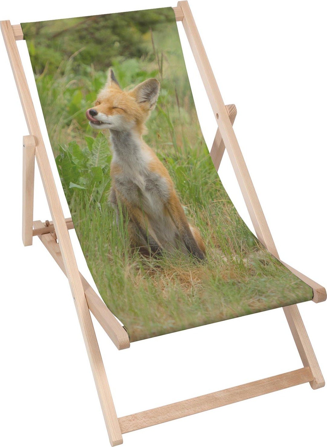 Dreamroots Chaise longue pliante bois, bois de hêtre jusqu'à 130 kg, Chaise longue pliante avec réglage de l'inclinaison du dossier en 3 positions, Little Fox