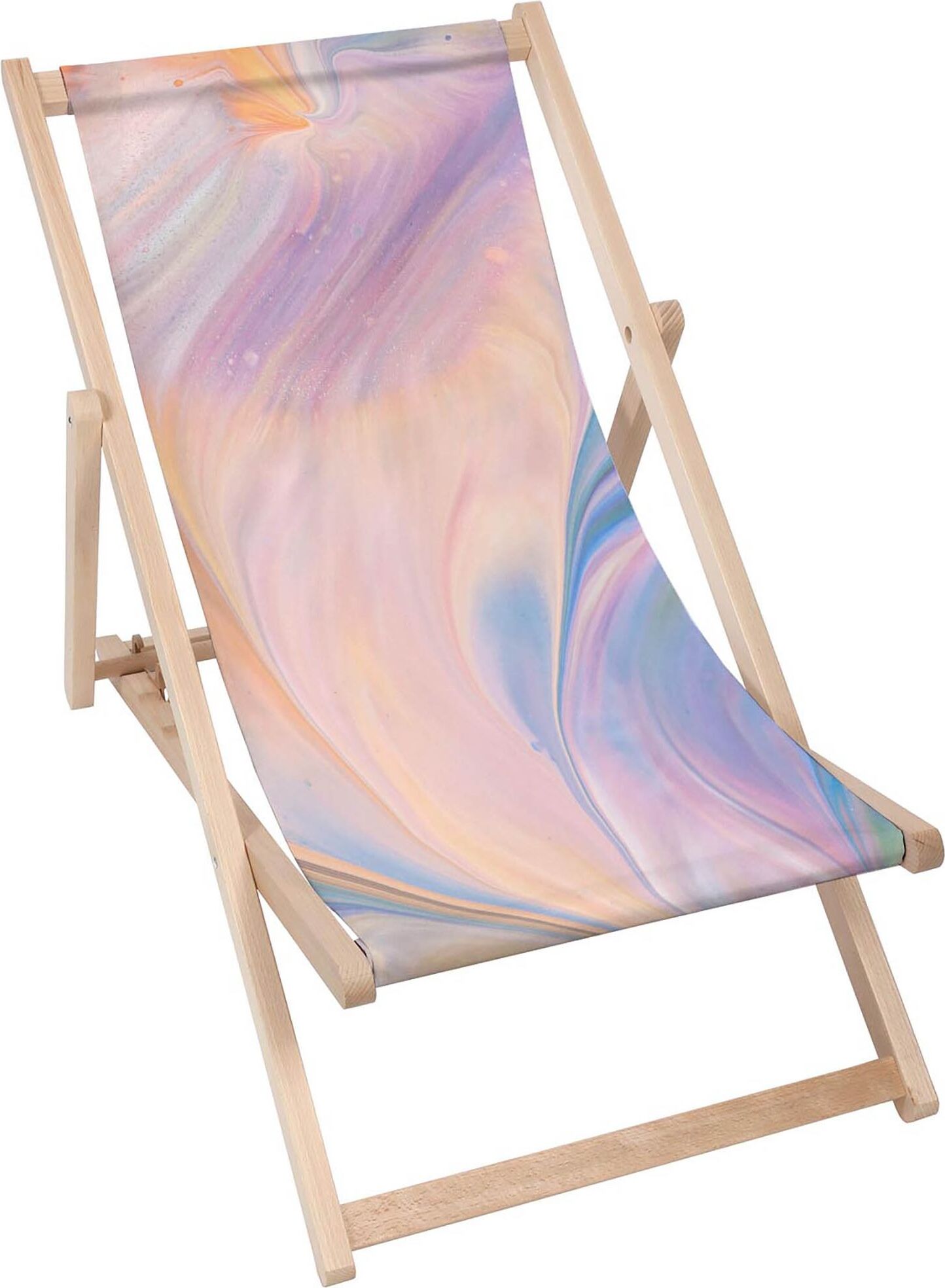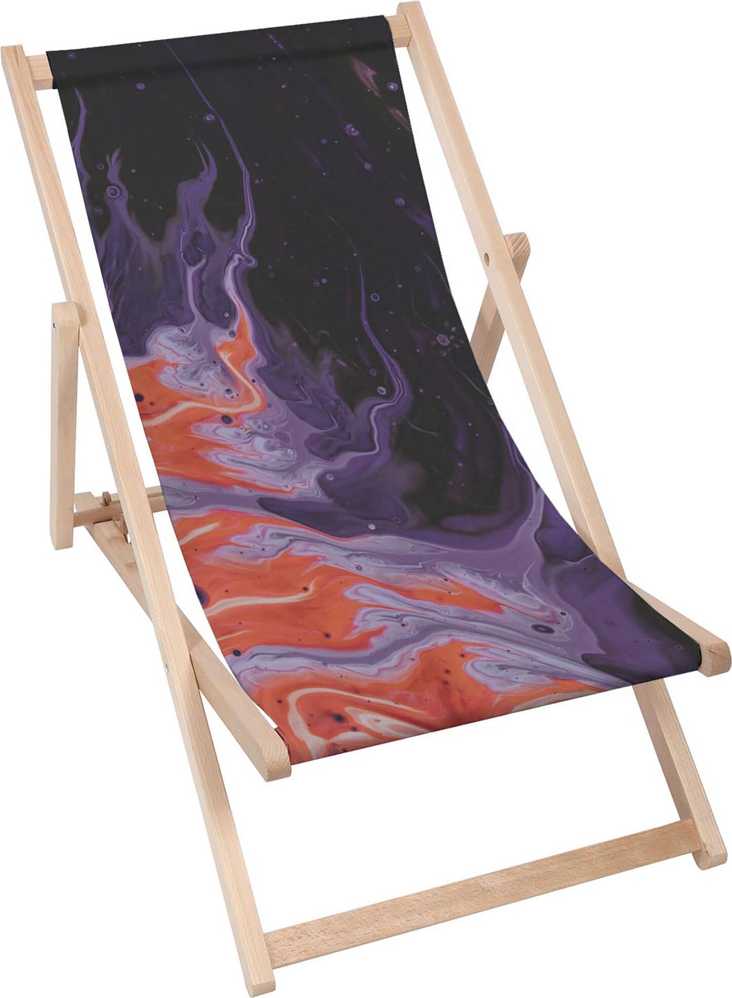 Dreamroots Chaise longue pliante bois, bois de hêtre jusqu'à 130 kg, Chaise longue pliante avec réglage de l'inclinaison du dossier en 3 positions, Holographic