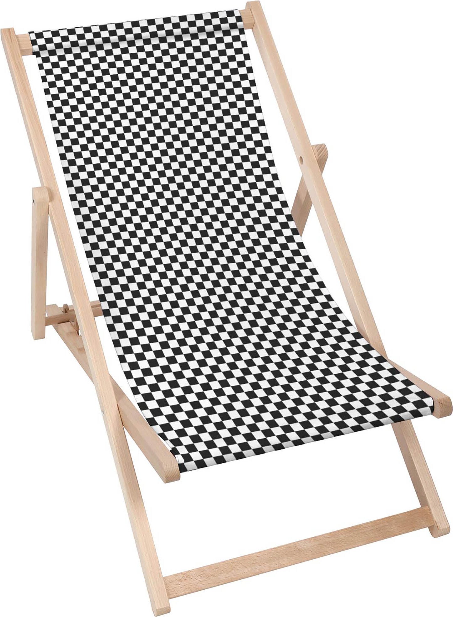 Dreamroots Chaise longue pliante bois, bois de hêtre jusqu'à 130 kg, Chaise longue pliante avec réglage de l'inclinaison du dossier en 3 positions, Checkered Bugs