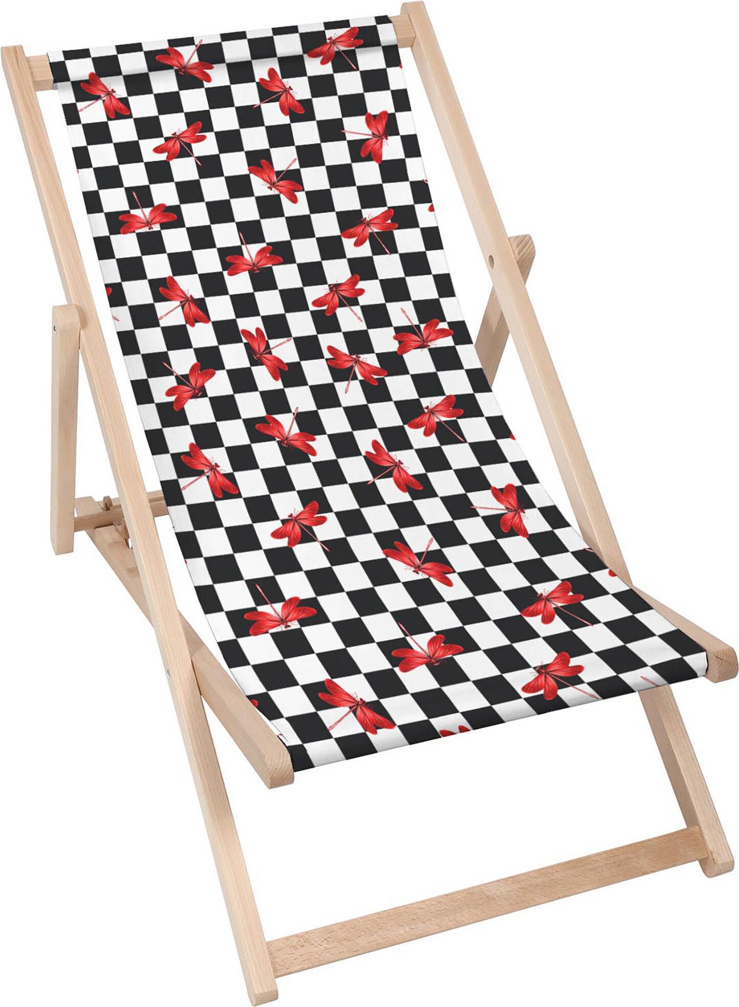 Dreamroots Chaise longue pliante bois jusqu'à 130 kg, Chaise longue pliante avec dossier inclinable en 3 positions, Checkered Dragonfly