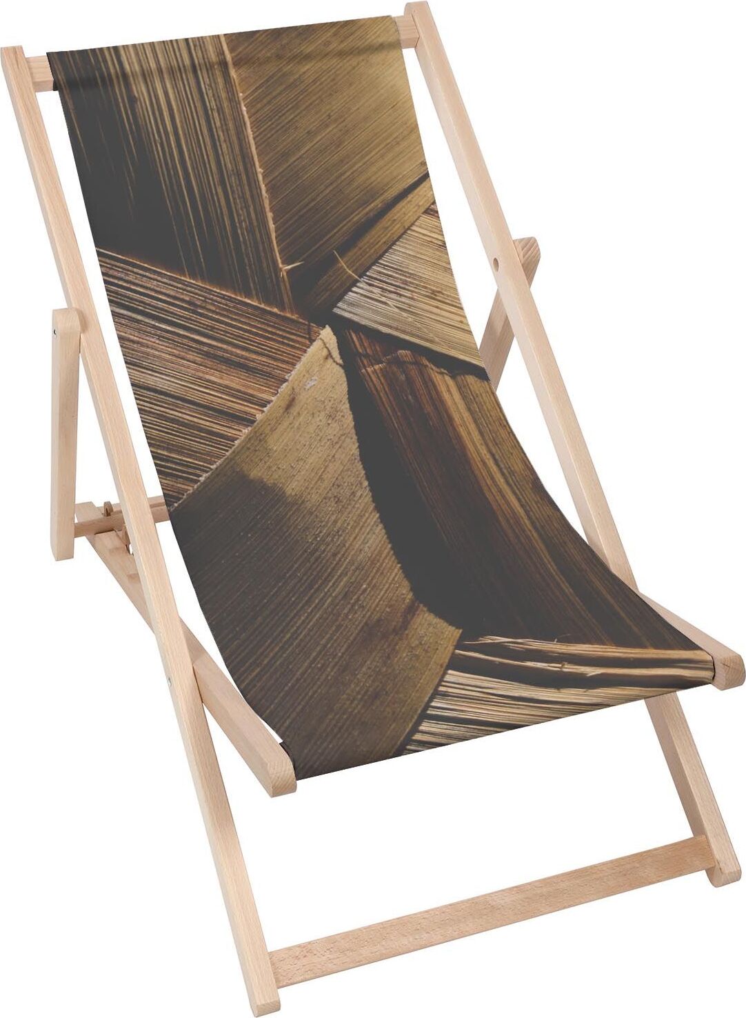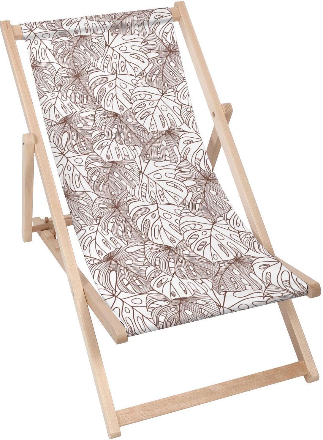 Dreamroots Chaise longue pliante bois jusqu'à 130 kg, Chaise longue pliante avec dossier inclinable en 3 positions, Brown Contours Of Monstera