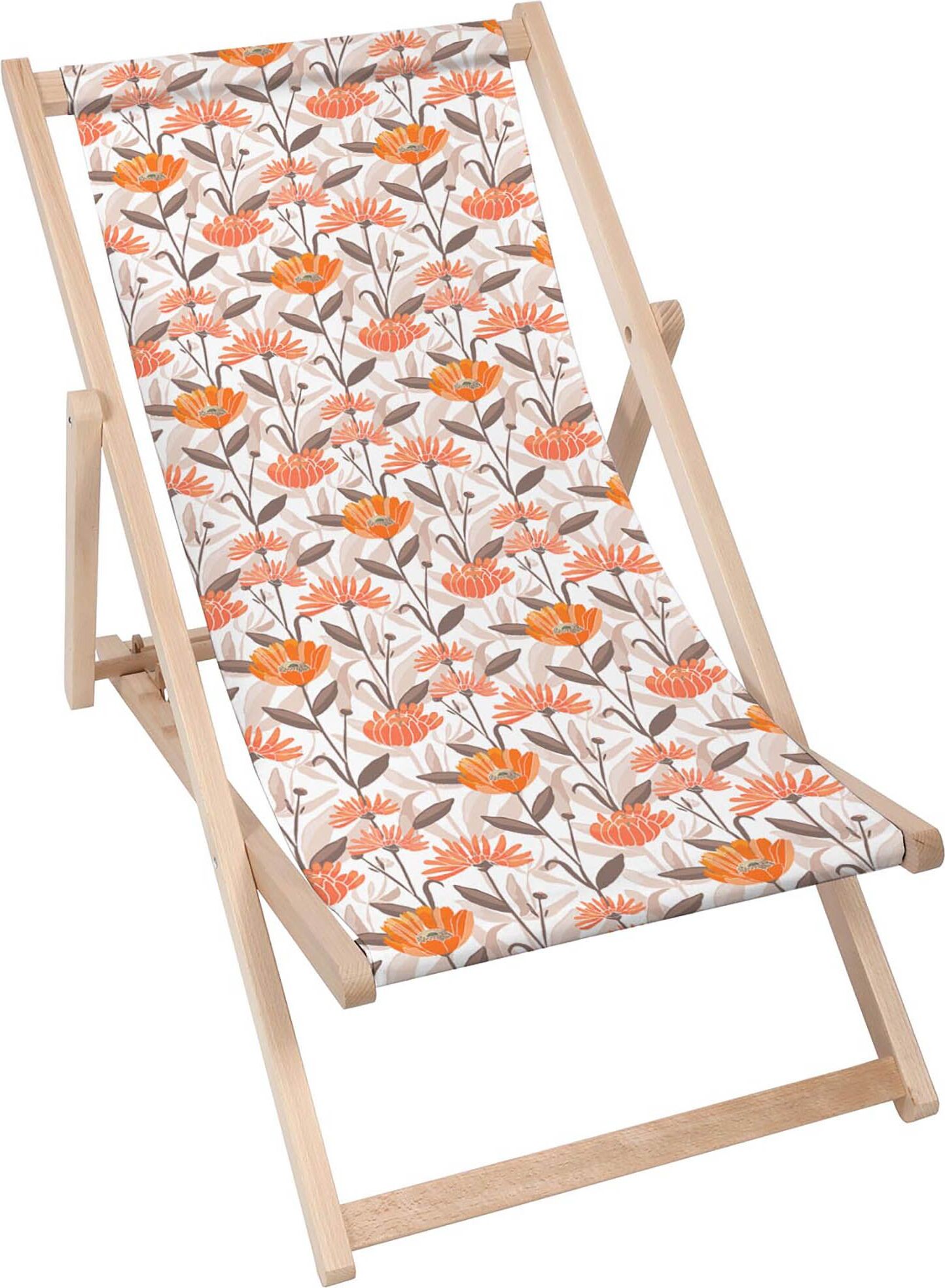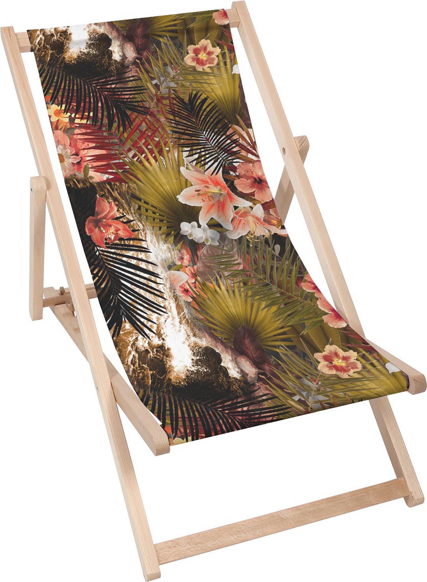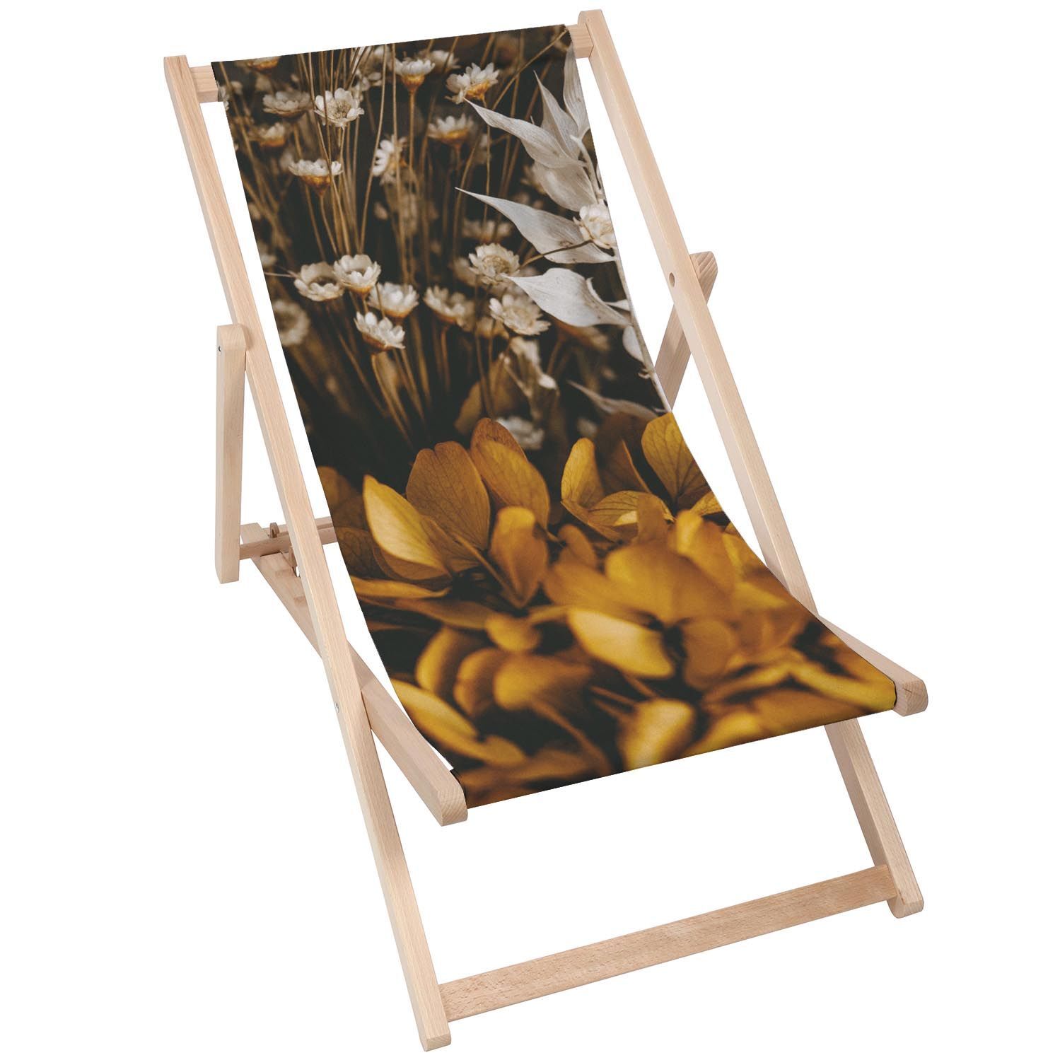Dreamroots Chaise longue pliante bois, bois de hêtre jusqu'à 130 kg, Chaise longue pliante avec réglage de l'inclinaison du dossier en 3 positions, Boho Bouquet