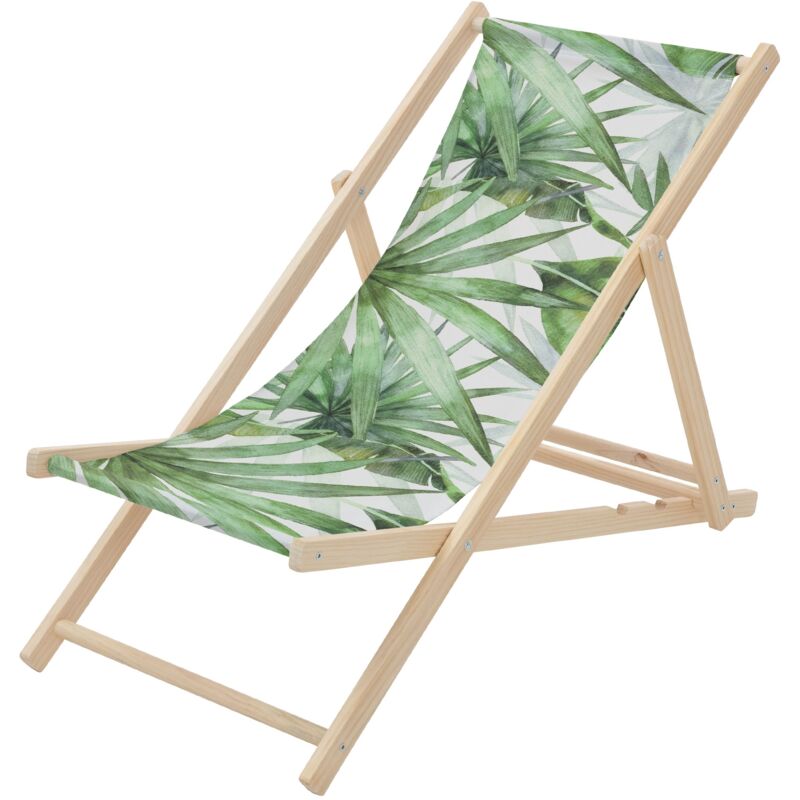 ECD Germany Chaise Longue Pliante Chilienne en Bois de Pin, Motif Palmier, Vert-Blanc, Dossier Réglable, 3 Positions de Couchage, jusqu'à 120kg, Bain