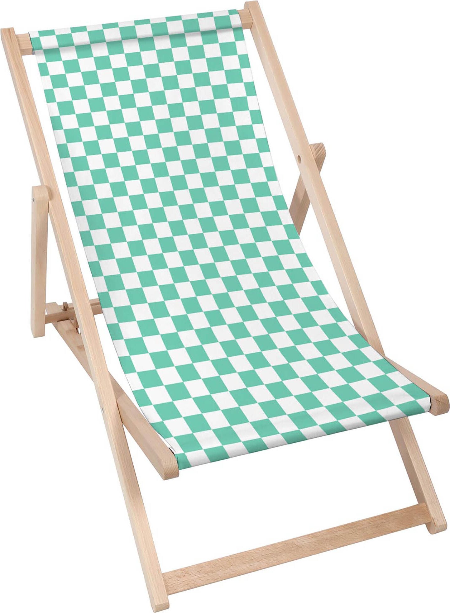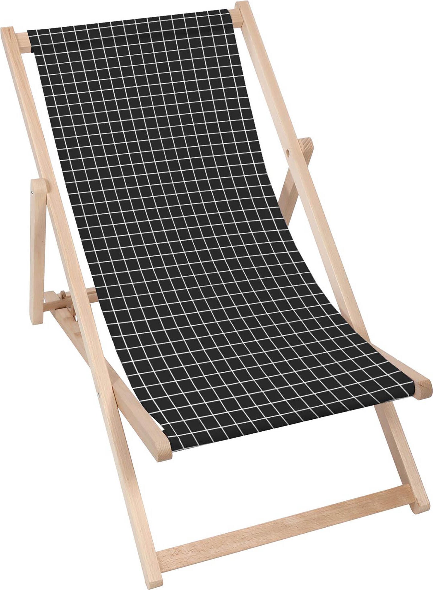 Dreamroots Chaise longue pliante bois, bois de hêtre jusqu'à 130 kg, Chaise longue pliante avec réglage de l'inclinaison du dossier en 3 positions, Checkered