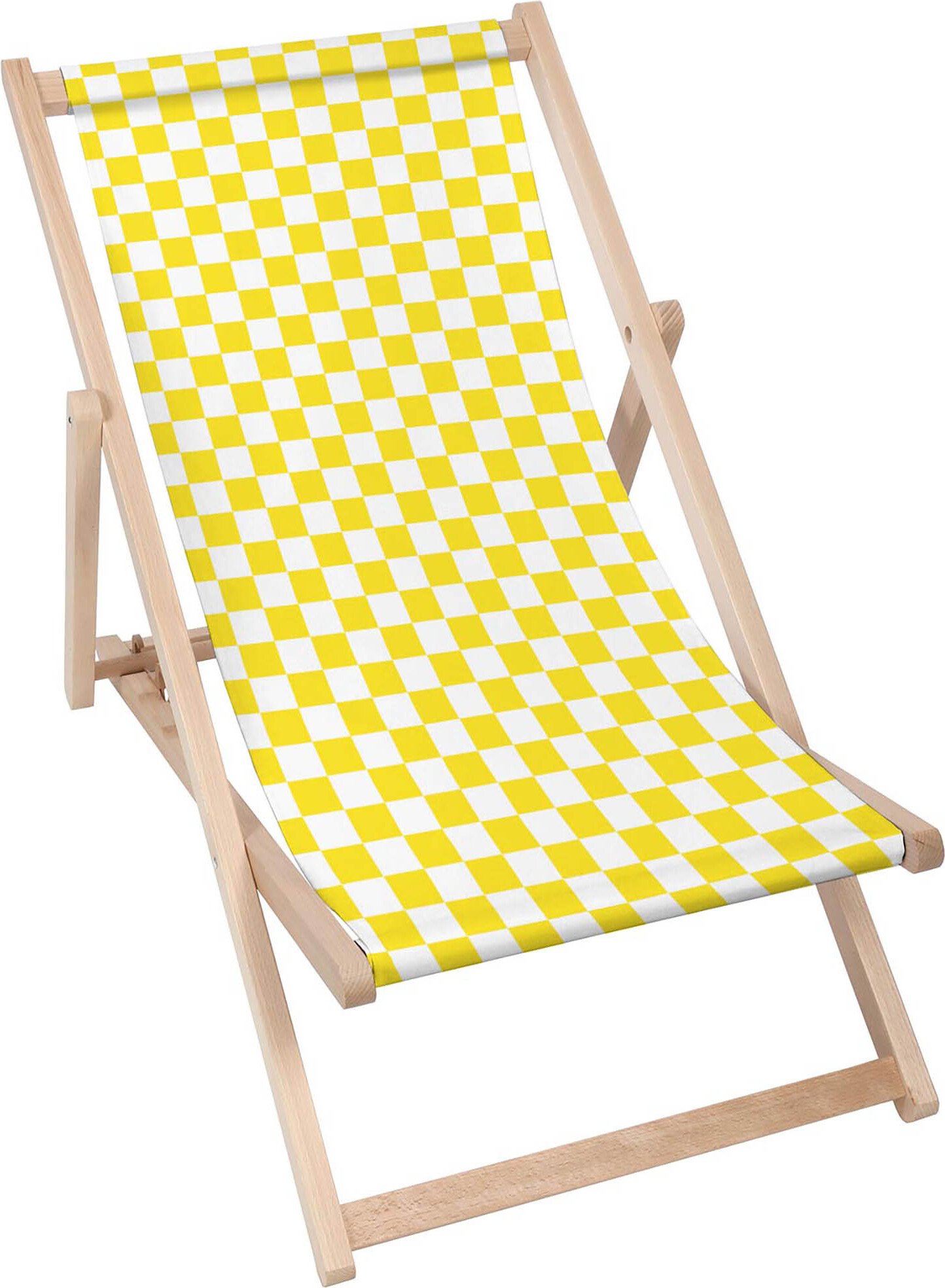 Dreamroots Chaise longue pliante bois jusqu'à 130 kg, Chaise longue pliante avec dossier inclinable en 3 positions, Checkered Yellow