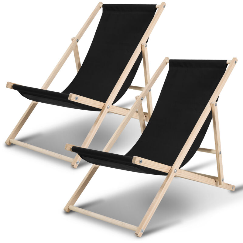 Randaco 2X Chilienne de jardin Chaise longue pliante Confortable Balcon Bois Chaise longue 120 kg Noir