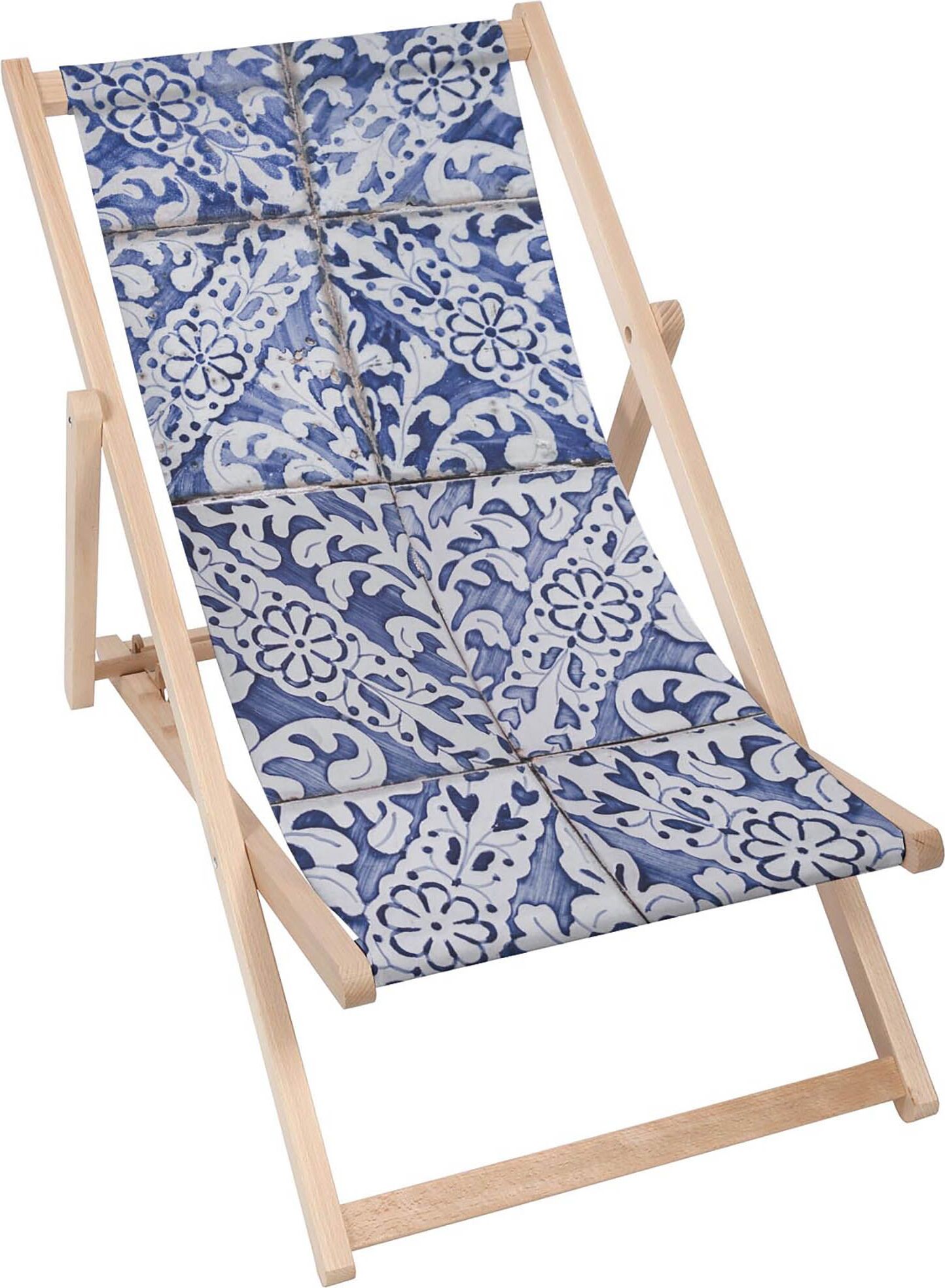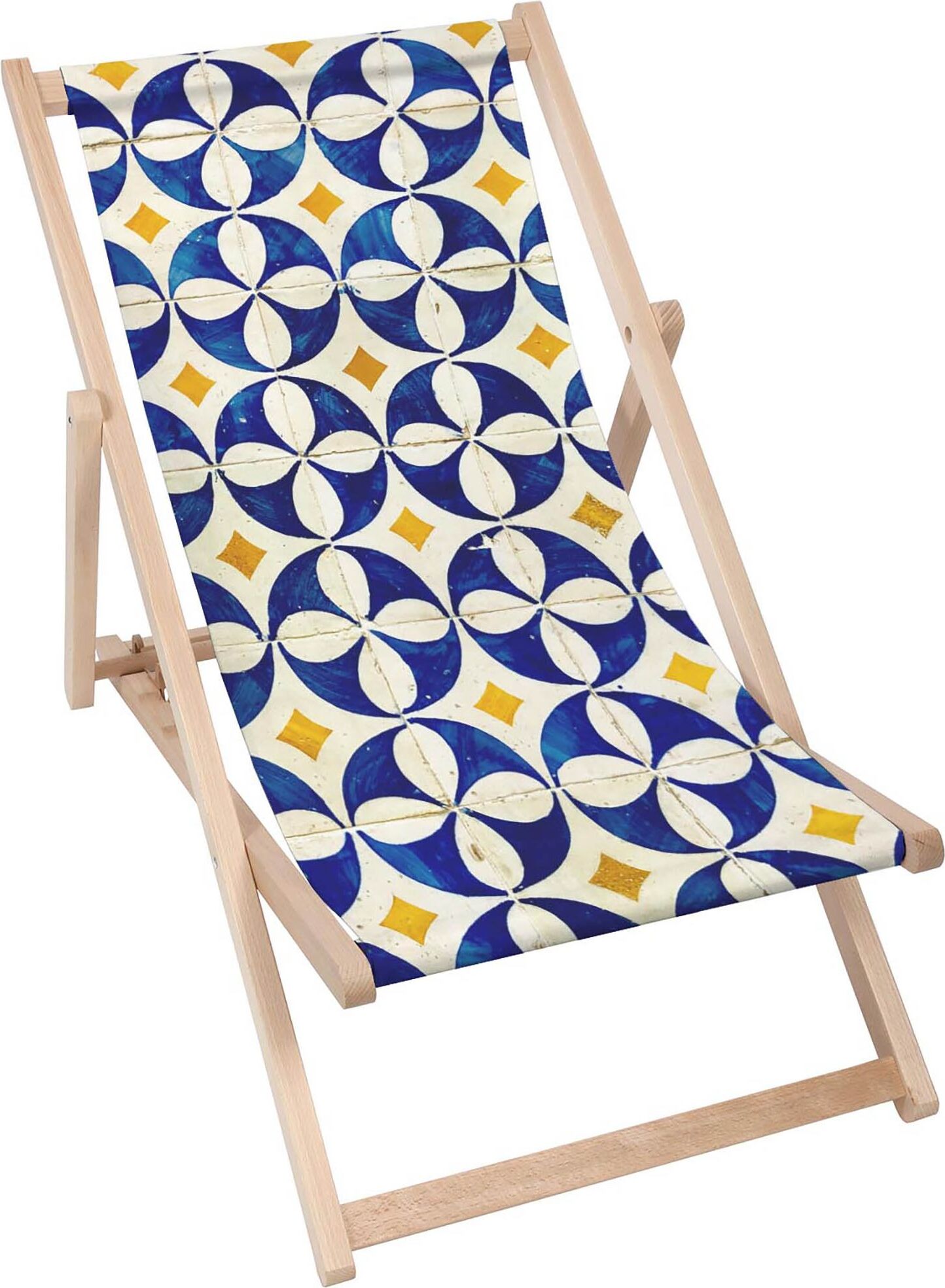 Dreamroots Chaise longue pliante bois, bois de hêtre jusqu'à 130 kg, Chaise longue pliante avec réglage de l'inclinaison du dossier en 3 positions, Azulejo