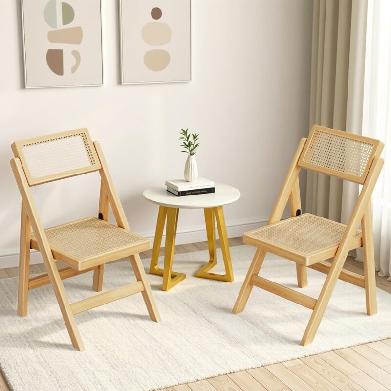 Lot de 2 chaise pliante bois, chaises rotin salle à manger avec cadre en bambou, dossier pivotant, chaise cannage pliante,charge 150 kg (2)