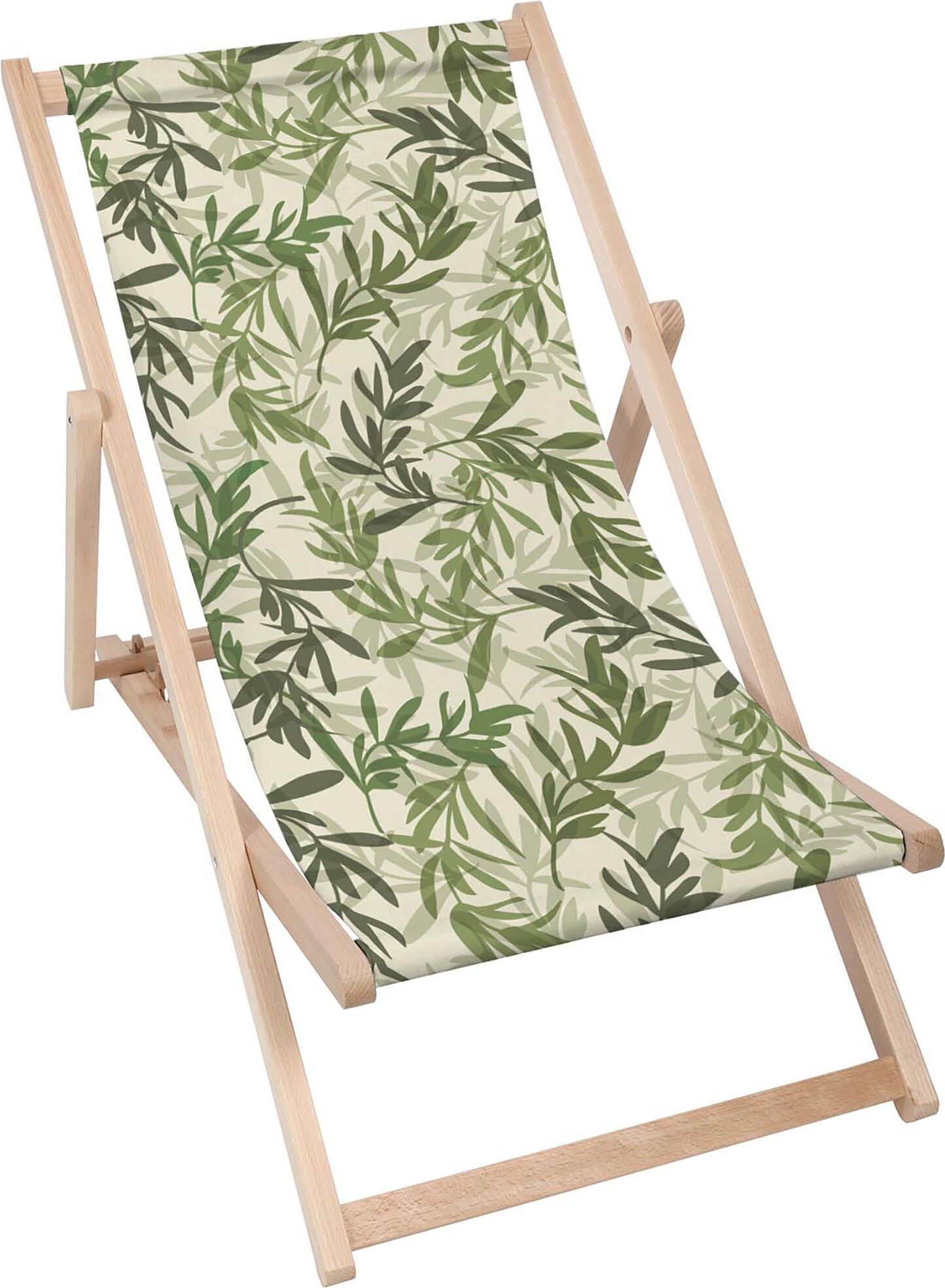 Dreamroots Chaise longue pliante bois, bois de hêtre jusqu'à 130 kg, Chaise longue pliante avec réglage de l'inclinaison du dossier en 3 positions, Green Leaves