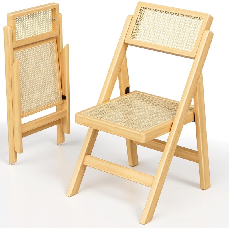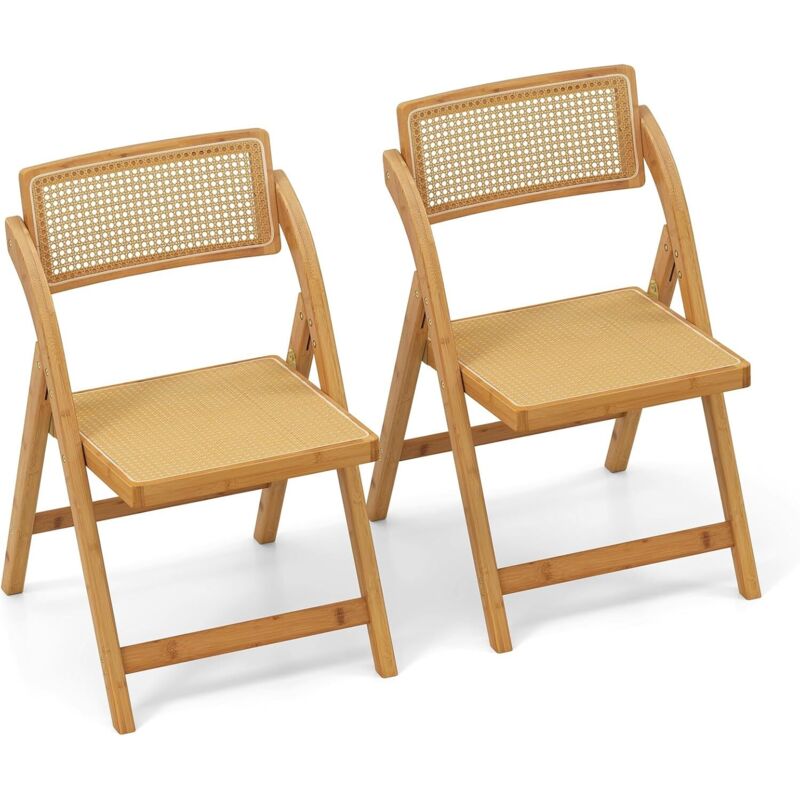 Costway - Chaise Pliante Bois Lot de 2, Assise en Rotin pp, Dossier Rotative, Chaise Pliante Interieur en Bambou, Design Cannage, Style Bohème,