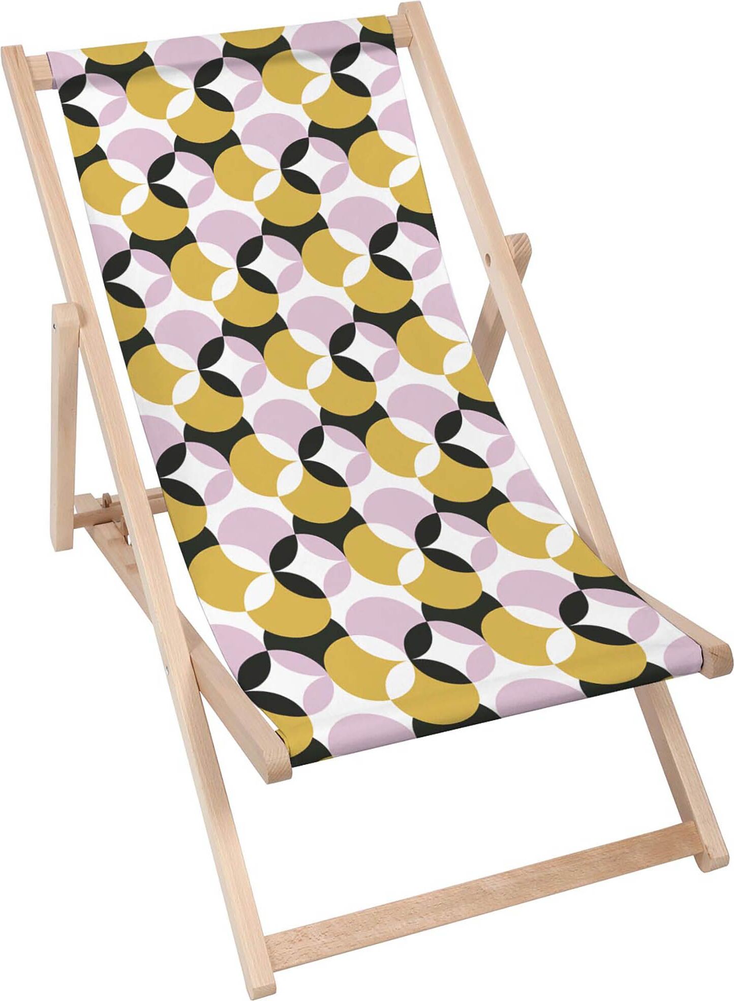 Dreamroots Chaise longue pliante bois jusqu'à 130 kg, Chaise longue pliante avec dossier inclinable en 3 positions, Geometric Circles
