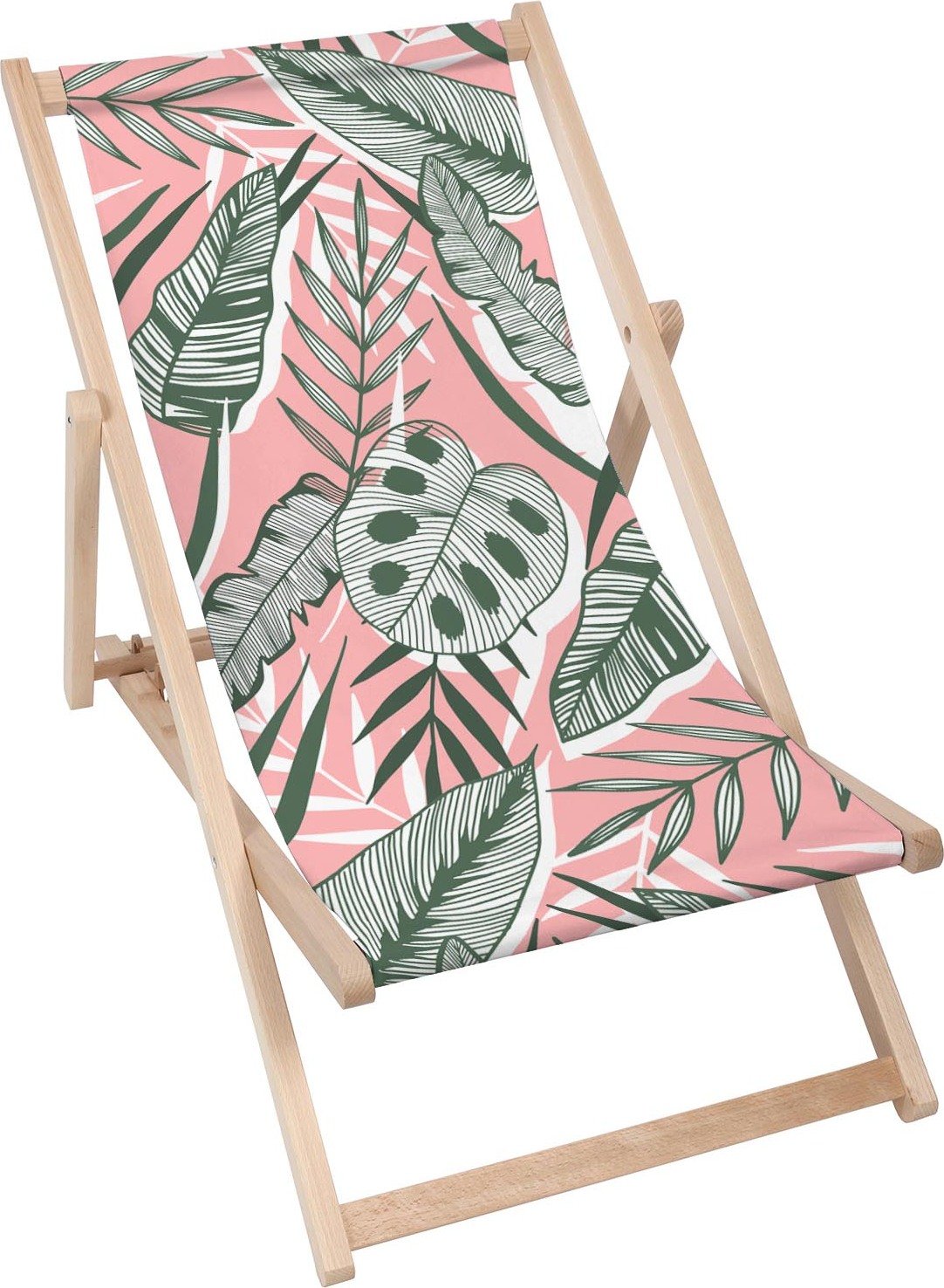 Dreamroots Chaise longue pliante bois, bois de hêtre jusqu'à 130 kg, Chaise longue pliante avec réglage de l'inclinaison du dossier en 3 positions, Jungle Leaves