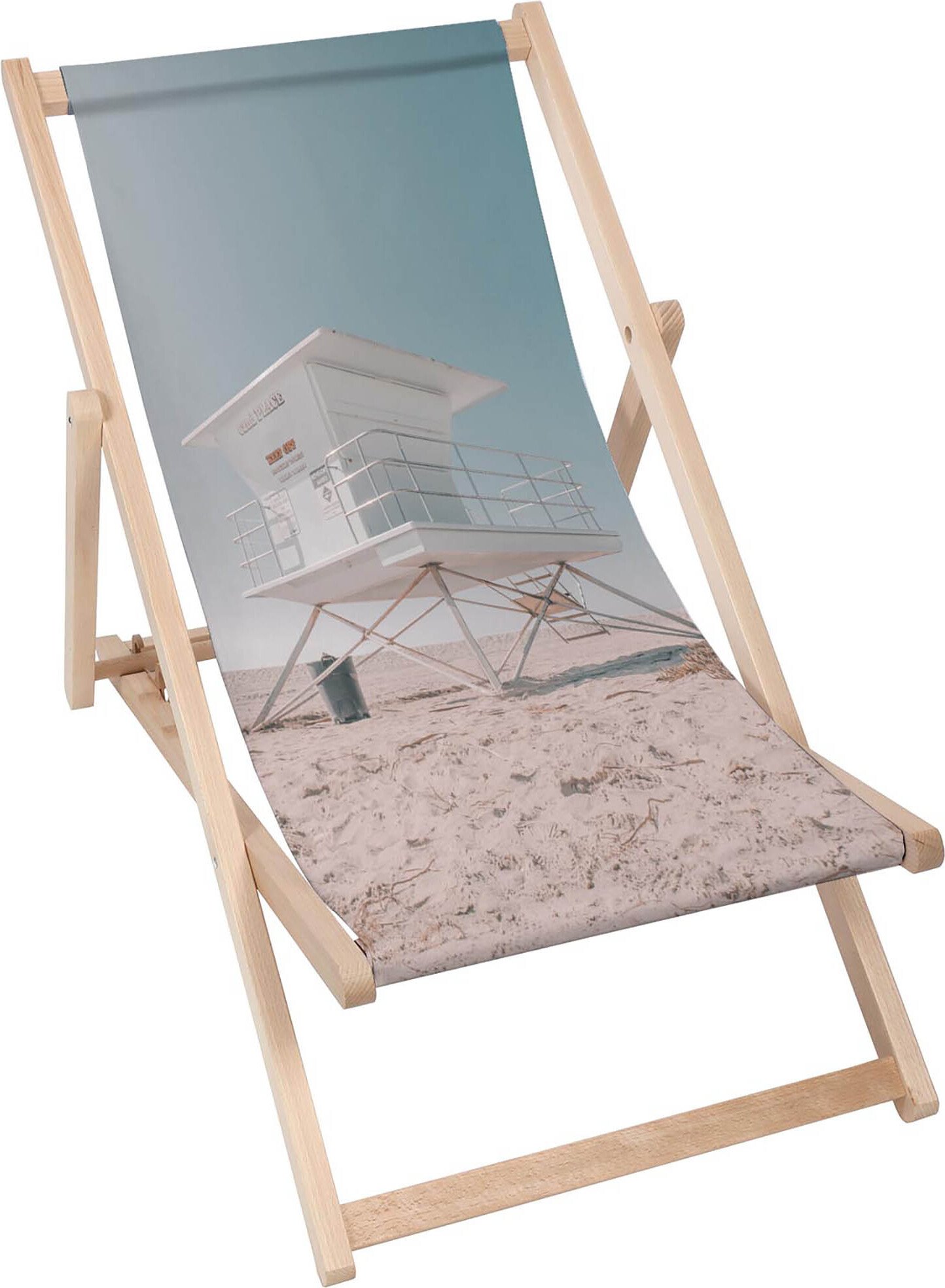 Dreamroots Chaise longue pliante bois jusqu'à 130 kg, Chaise longue pliante avec dossier inclinable en 3 positions, White Lifeguard Tower