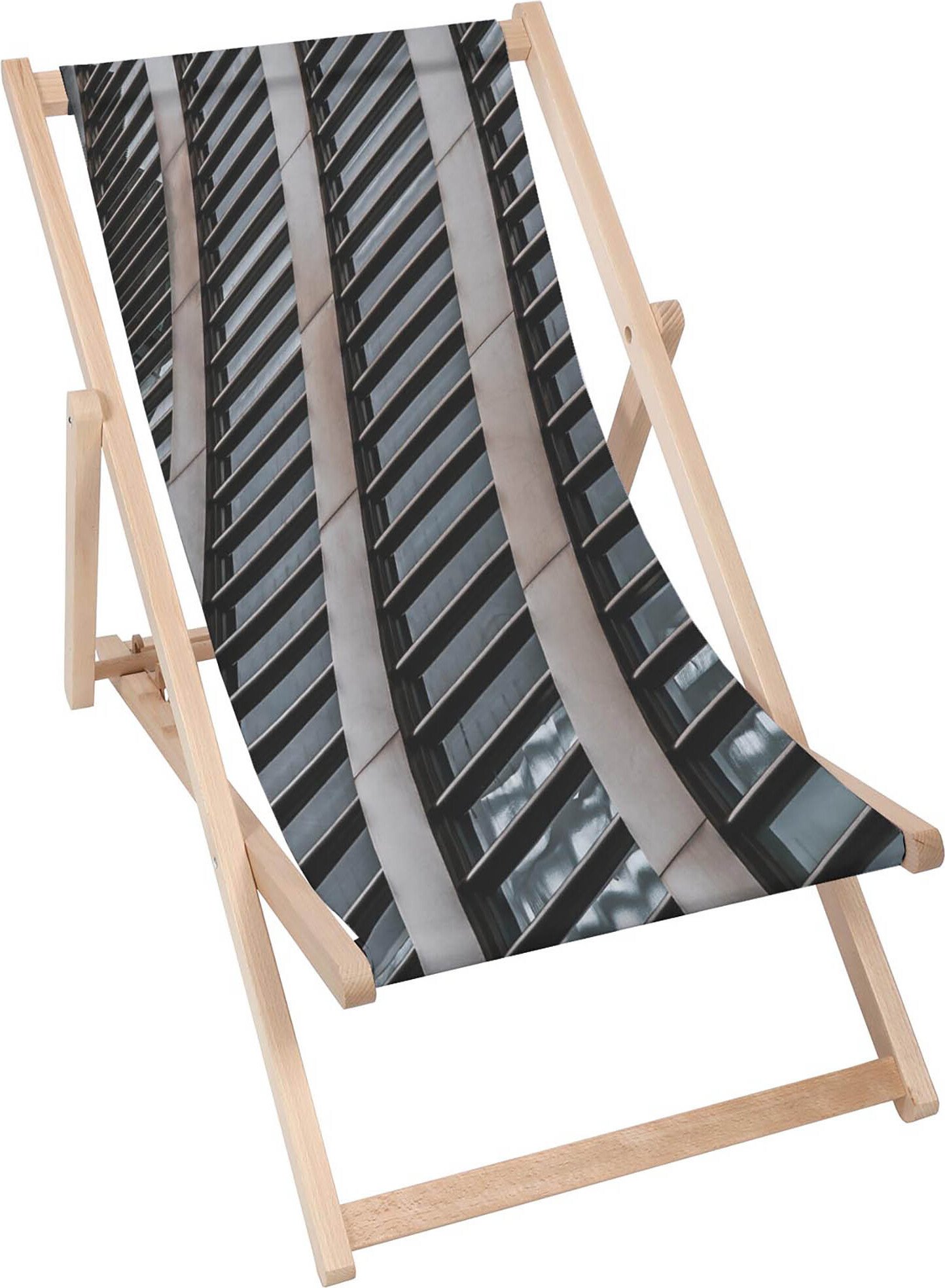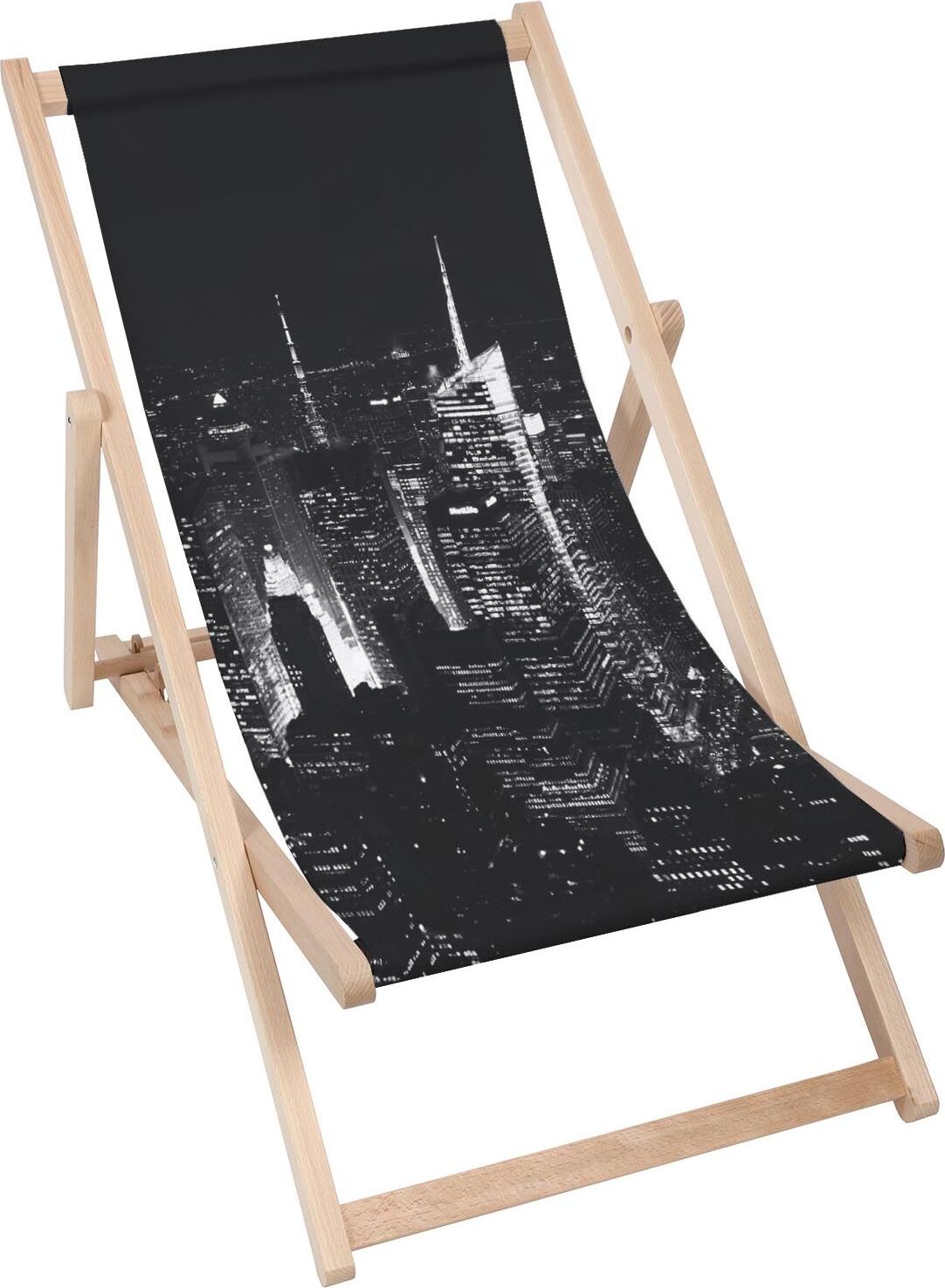 Dreamroots Chaise longue pliante bois, bois de hêtre jusqu'à 130 kg, Chaise longue pliante avec réglage de l'inclinaison du dossier en 3 positions, City Lights