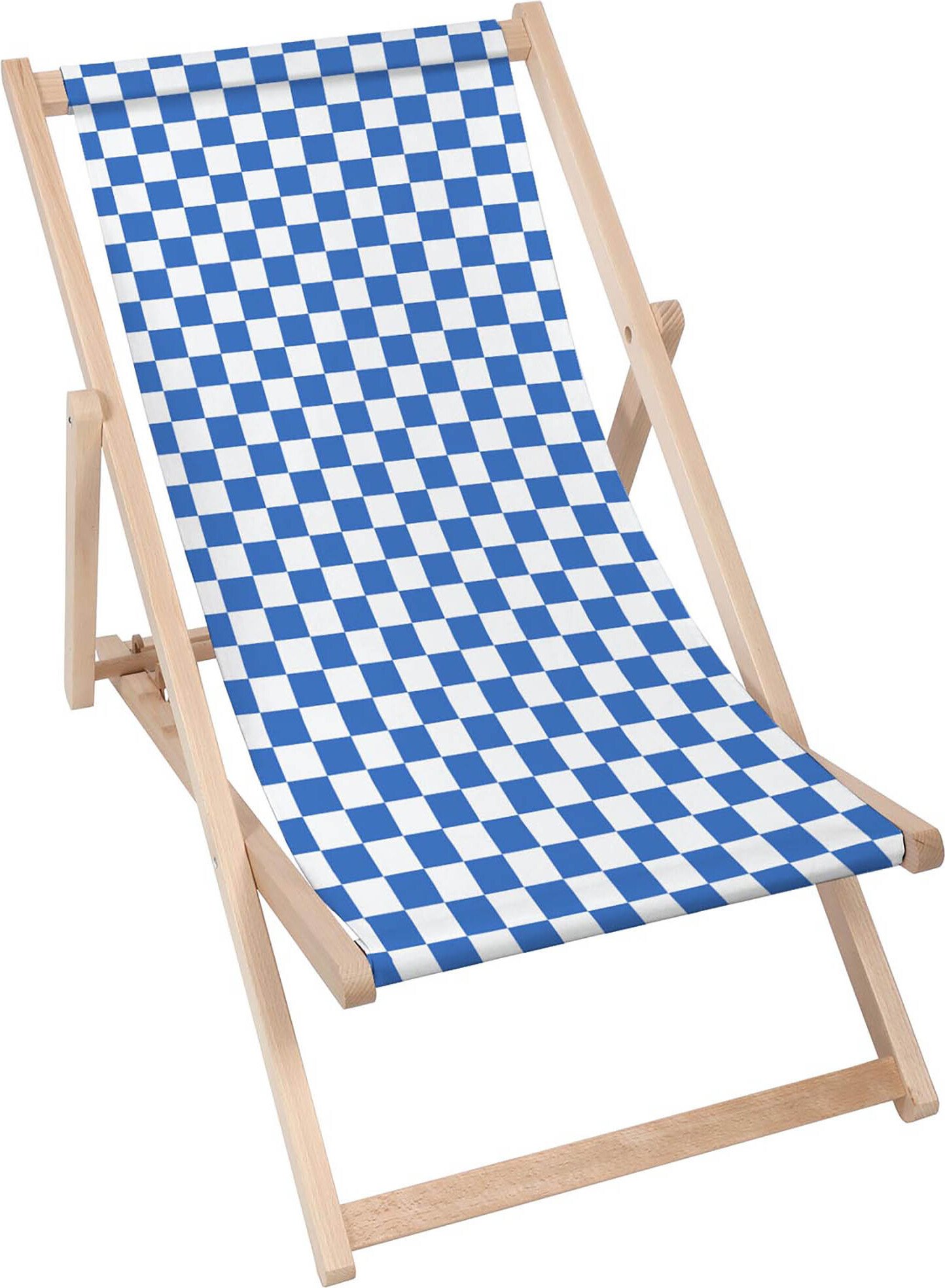 Dreamroots Chaise longue pliante bois, bois de hêtre jusqu'à 130 kg, Chaise longue pliante avec réglage de l'inclinaison du dossier en 3 positions, Checkered Blue