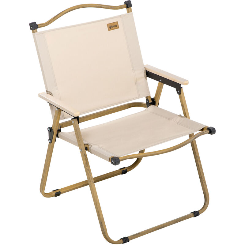 Outsunny - Chaise de plage camping pliante - poignée - structure acier aspect bois oxford beige