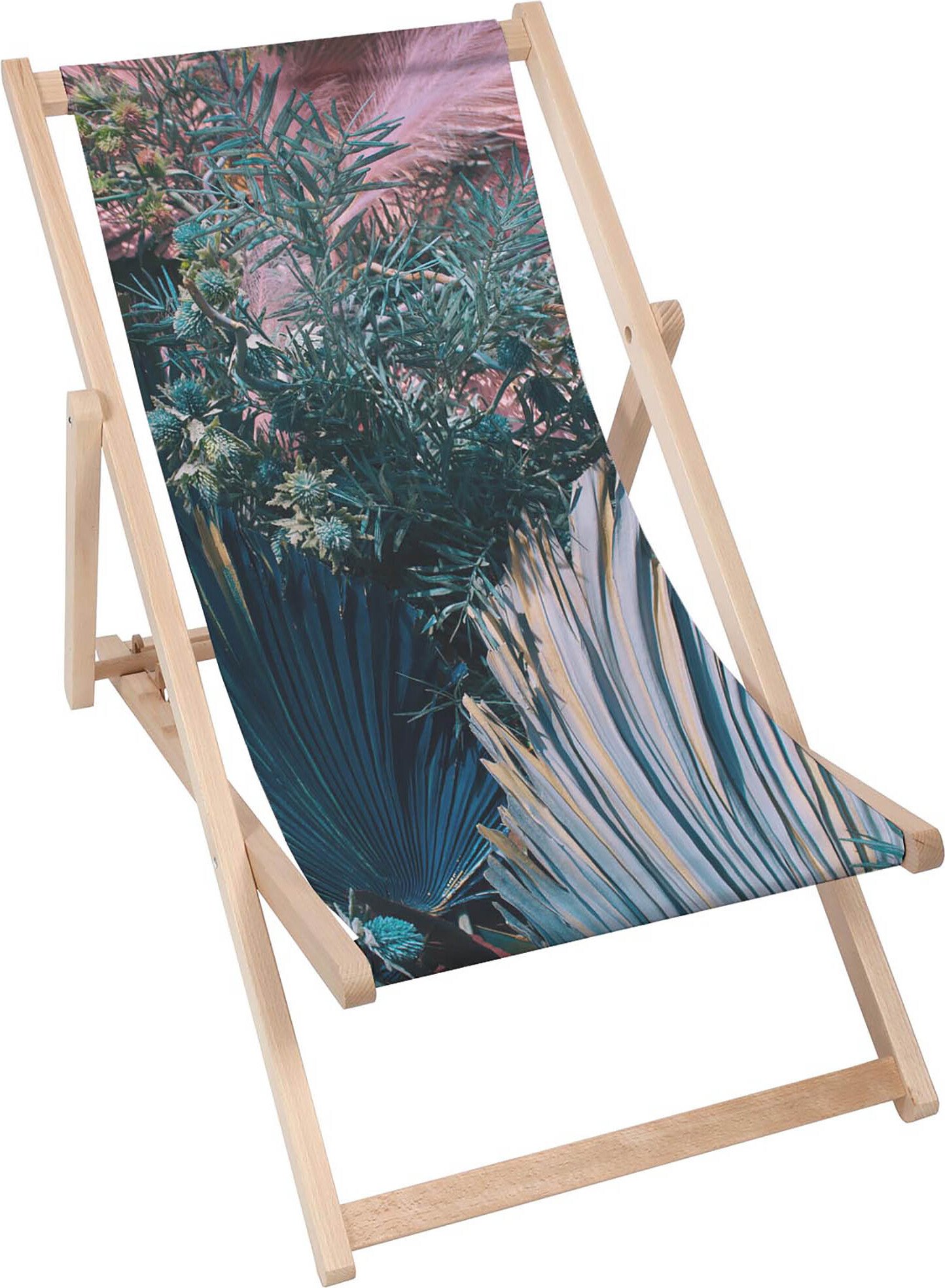 Dreamroots Chaise longue pliante bois, bois de hêtre jusqu'à 130 kg, Chaise longue pliante avec réglage de l'inclinaison du dossier en 3 positions, Boho Plants