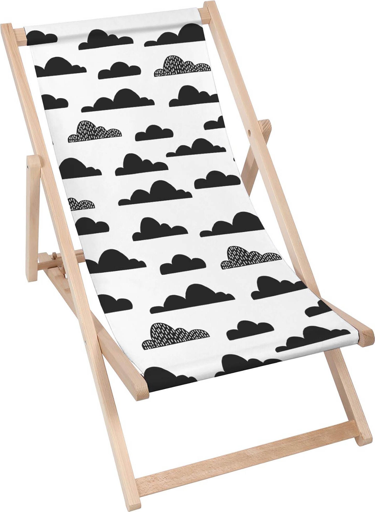 Dreamroots Chaise longue pliante bois, bois de hêtre jusqu'à 130 kg, Chaise longue pliante avec réglage de l'inclinaison du dossier en 3 positions, Black Clouds