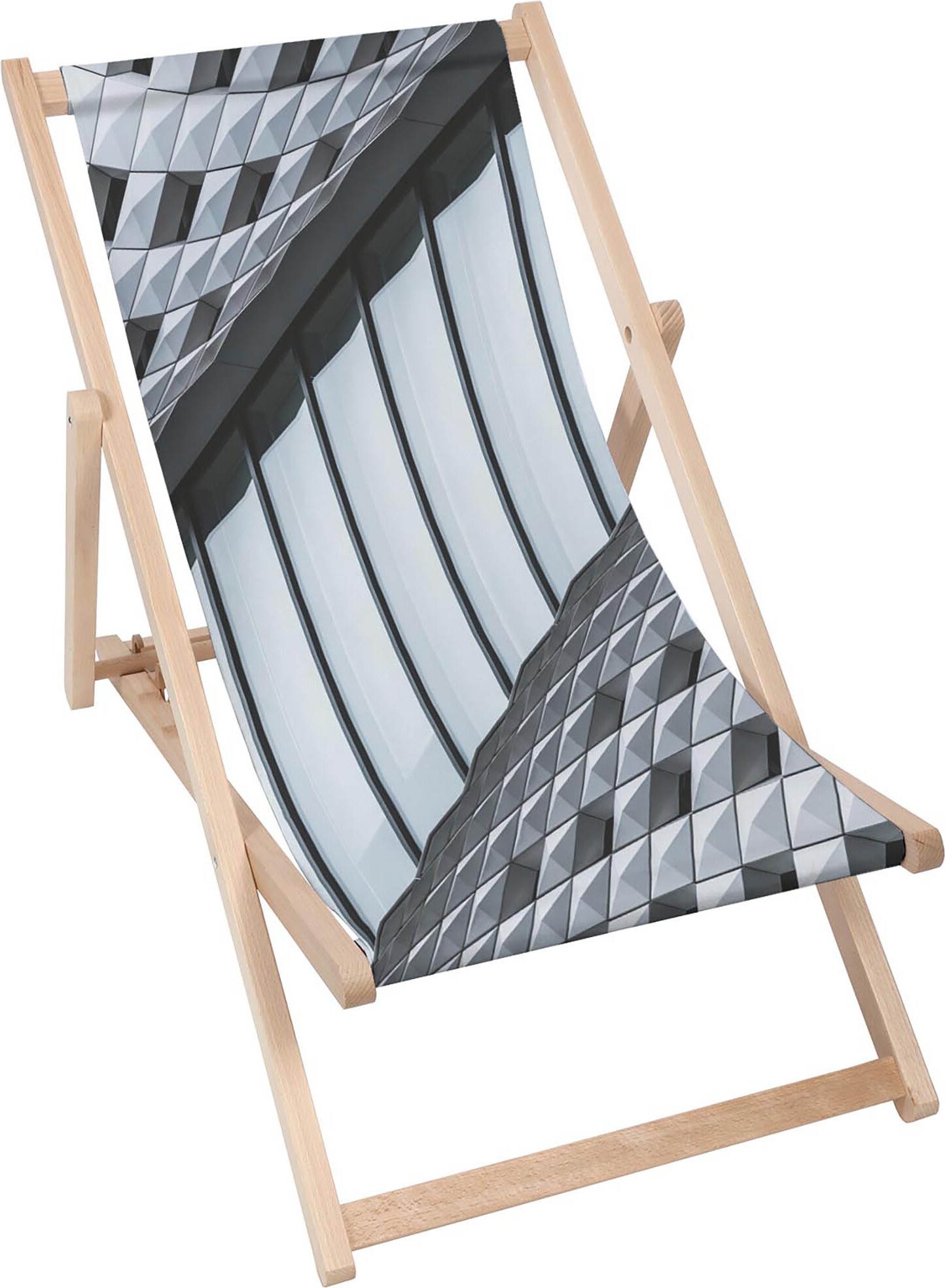Dreamroots Chaise longue pliante bois, bois de hêtre jusqu'à 130 kg, Chaise longue pliante avec réglage de l'inclinaison du dossier en 3 positions, Urban Geometry