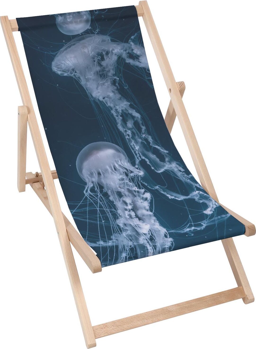 Dreamroots Chaise longue pliante bois, bois de hêtre jusqu'à 130 kg, Chaise longue pliante avec réglage de l'inclinaison du dossier en 3 positions, Jellyfish