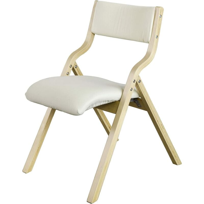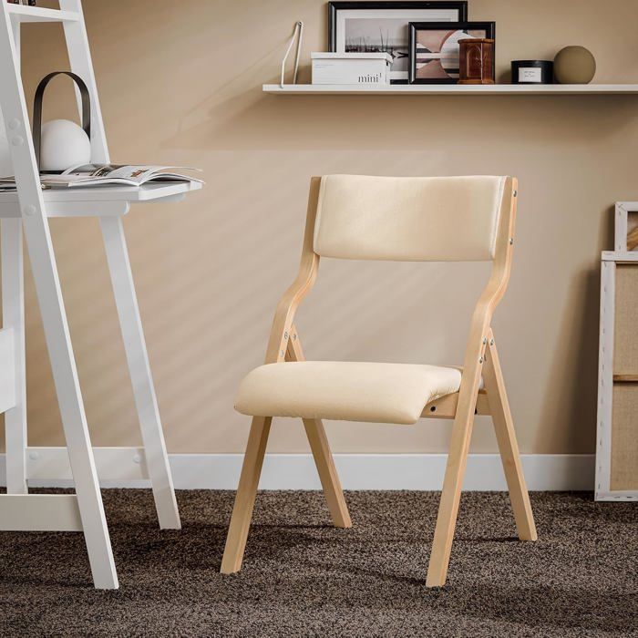 Chaise Pliante Bois Assise Rembourrée Beige – Cuisine Bureau Salon – Structure Bouleau Housse Polyester Amovible – SoBuy