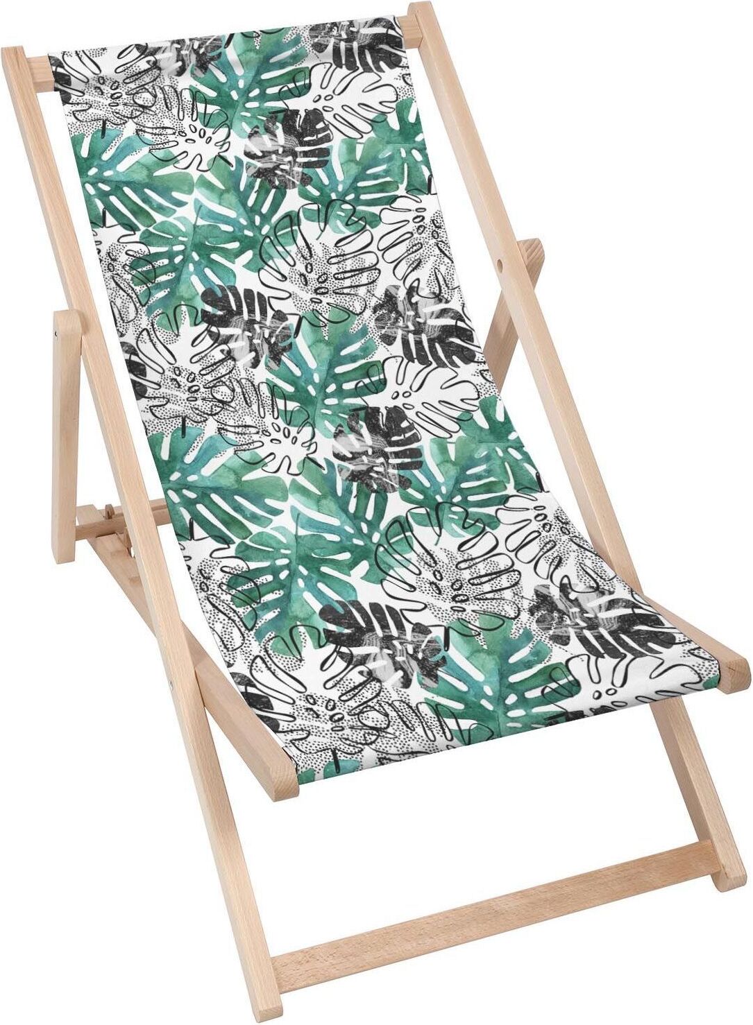 Dreamroots Chaise longue pliante bois jusqu'à 130 kg, Chaise longue pliante avec dossier inclinable en 3 positions, Green And Black Monstera
