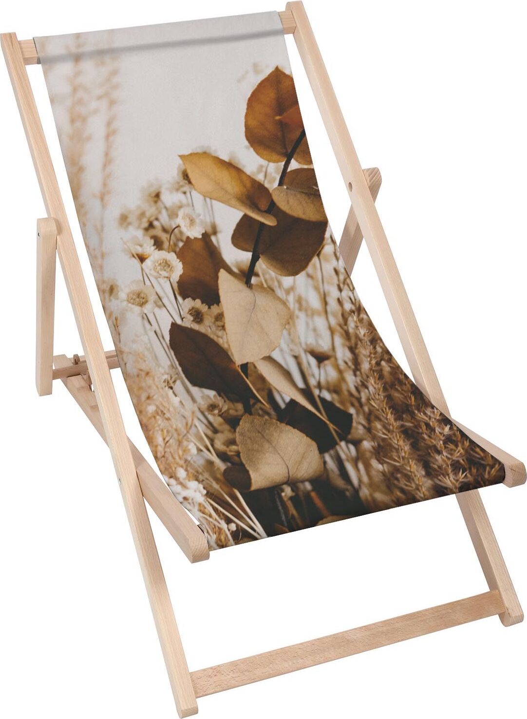 Dreamroots Chaise longue pliante bois, bois de hêtre jusqu'à 130 kg, Chaise longue pliante avec réglage de l'inclinaison du dossier en 3 positions, Dry Leaf Boho