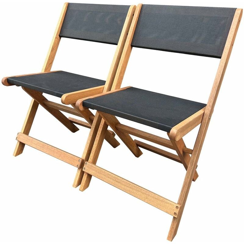 Chaise pliante en bois exotique "Seoul" - Maple - Noir - Lot de 2