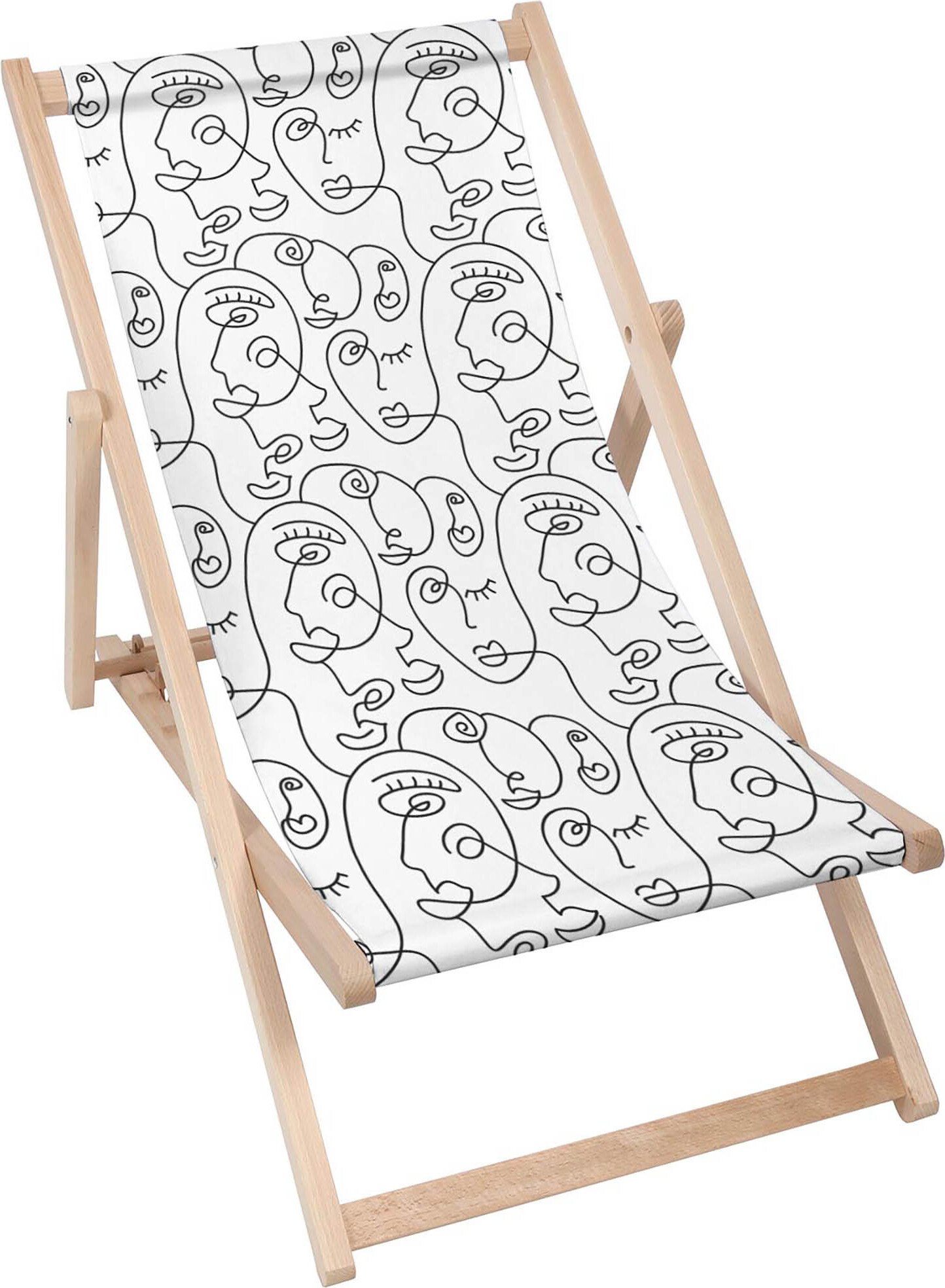 Dreamroots Chaise longue pliante bois, bois de hêtre jusqu'à 130kg,Chaise longue pliante avec dossier inclinable en 3 positions,AbstractFaceWhite