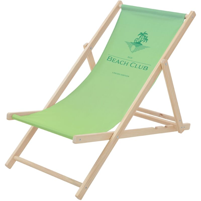 ECD Germany Chaise longue chilienne pliante motif beach club couleur vert en bois de pin jusqu'à 120 kg dossier réglable 3 positions de couchage
