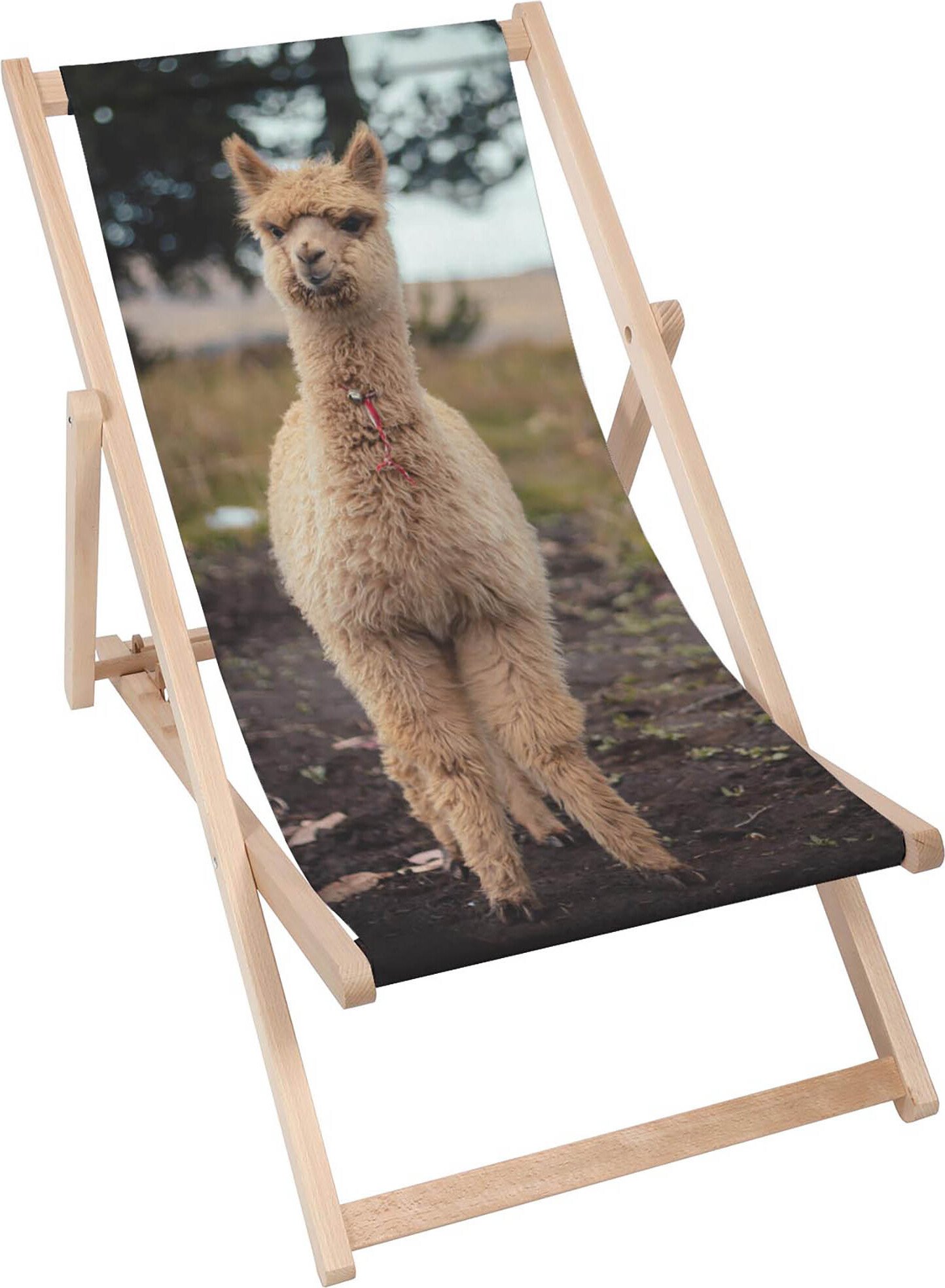 Dreamroots Chaise longue pliante bois, bois de hêtre jusqu'à 130 kg, Chaise longue pliante avec réglage de l'inclinaison du dossier en 3 positions, Happy Alpaca
