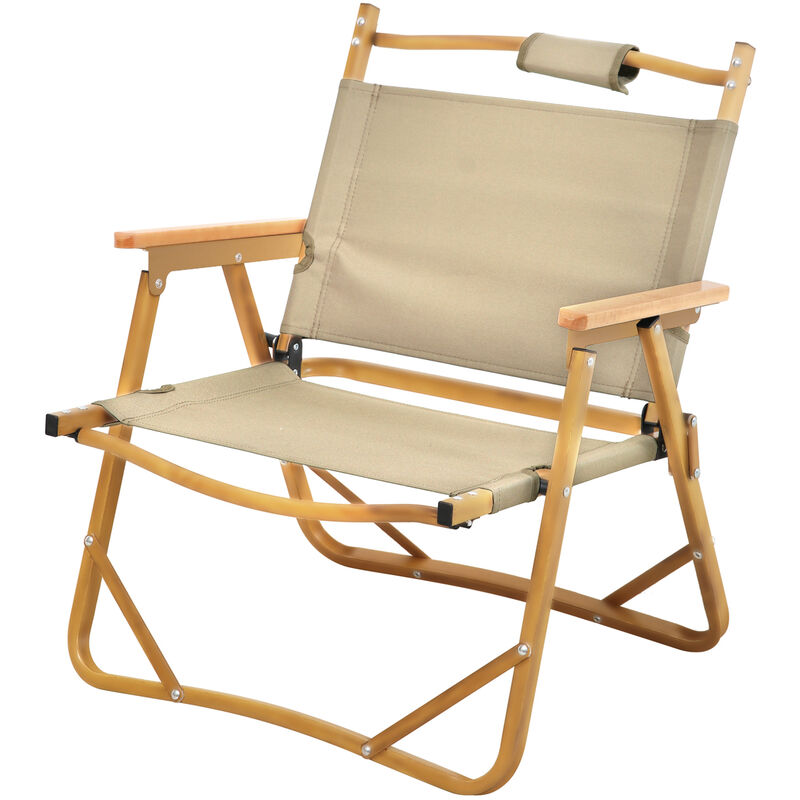 JAWINIO Chaise de camping extérieure en bois pliable avec accoudoirs Chaise pliante Beige