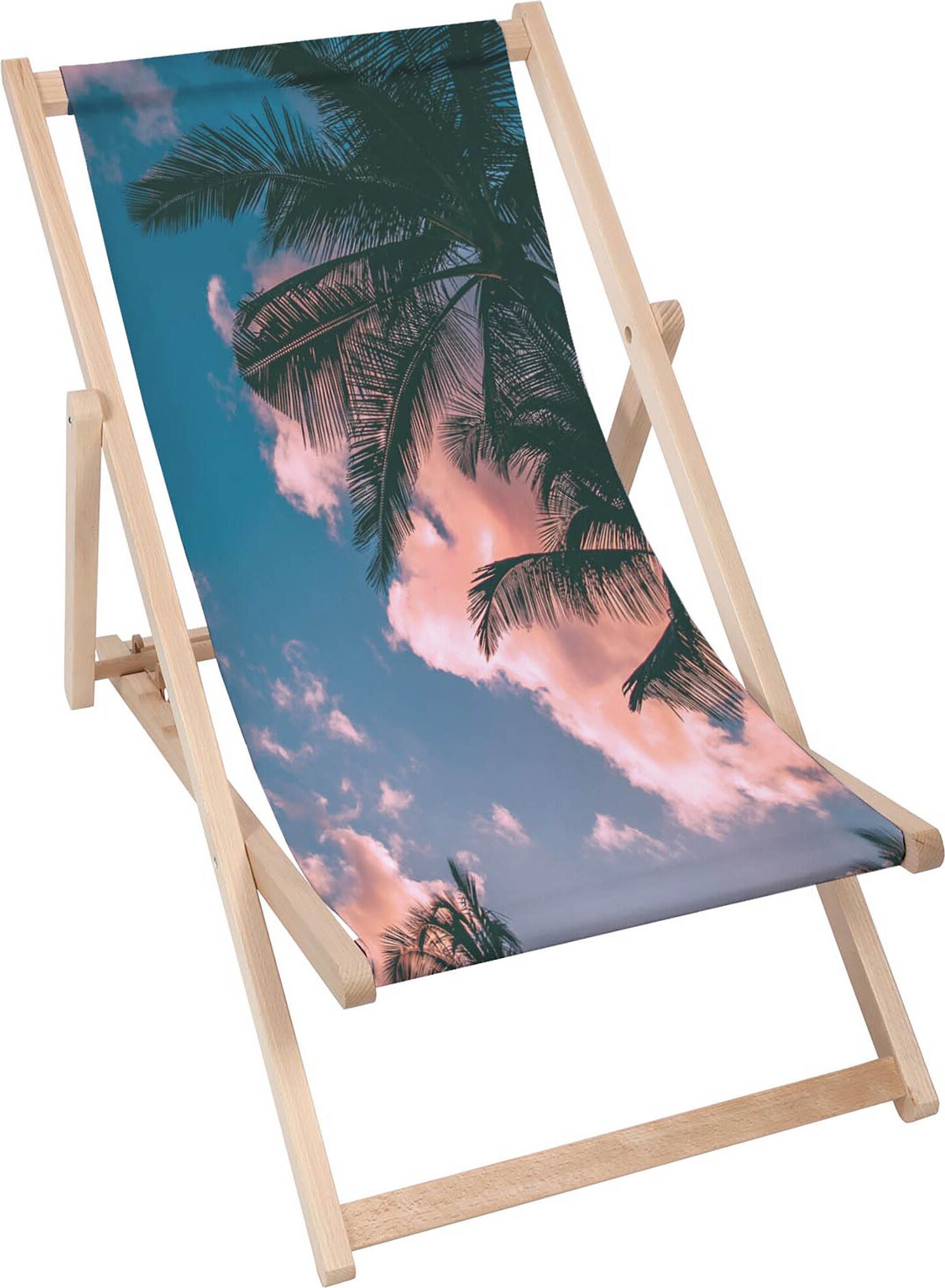 Dreamroots Chaise longue pliante bois jusqu'à 130 kg, Chaise longue pliante avec dossier inclinable en 3 positions, Under Palms Tree