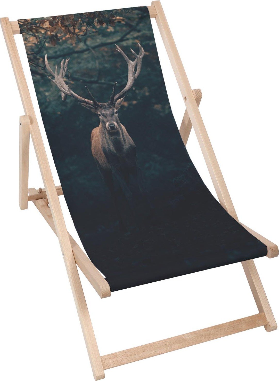 Dreamroots Chaise longue pliante bois, bois de hêtre jusqu'à 130 kg, Chaise longue pliante avec réglage de l'inclinaison du dossier en 3 positions, Deer