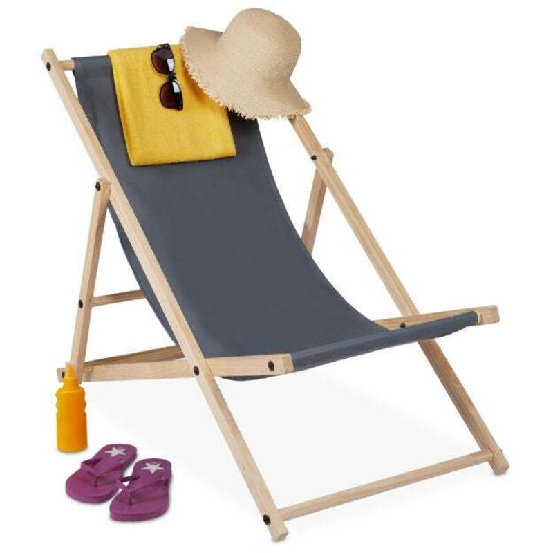 Deuba - casaria® Chaise longue pliante en bois Chaise de plage 3 positions Chilienne transat jardin exterieur Anthracite