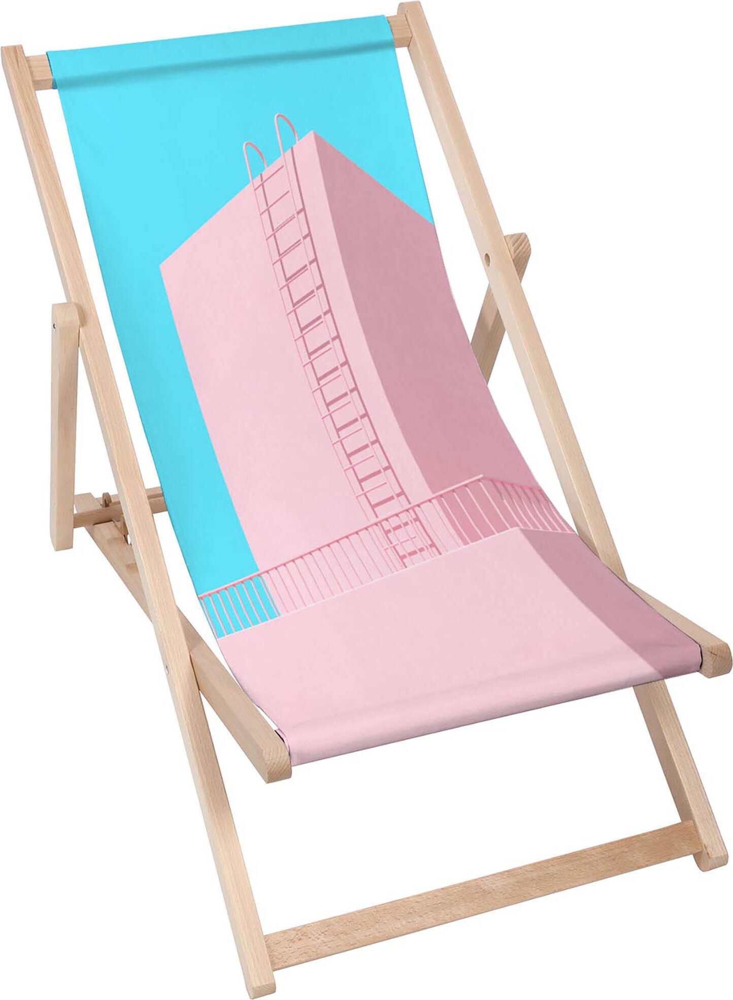 Dreamroots Chaise longue pliante bois jusqu'à 130 kg, Chaise longue pliante avec dossier inclinable en 3 positions, Distorted Pink Grid