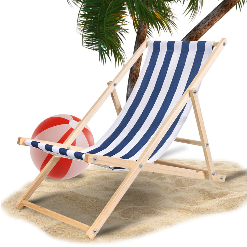 Randaco Chilienne de jardin Chaise longue pliante Confortable Balcon Bois Chaise longue 120 kg Bleu