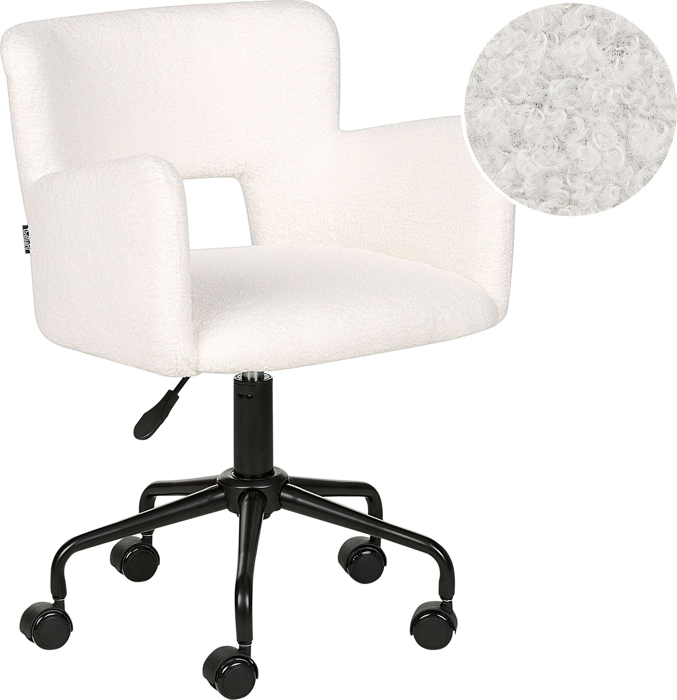 Chaise de bureau à roulettes ajustable métal et bouclette blanche - l 57 x p 57 x h 85-94.5cm - stan