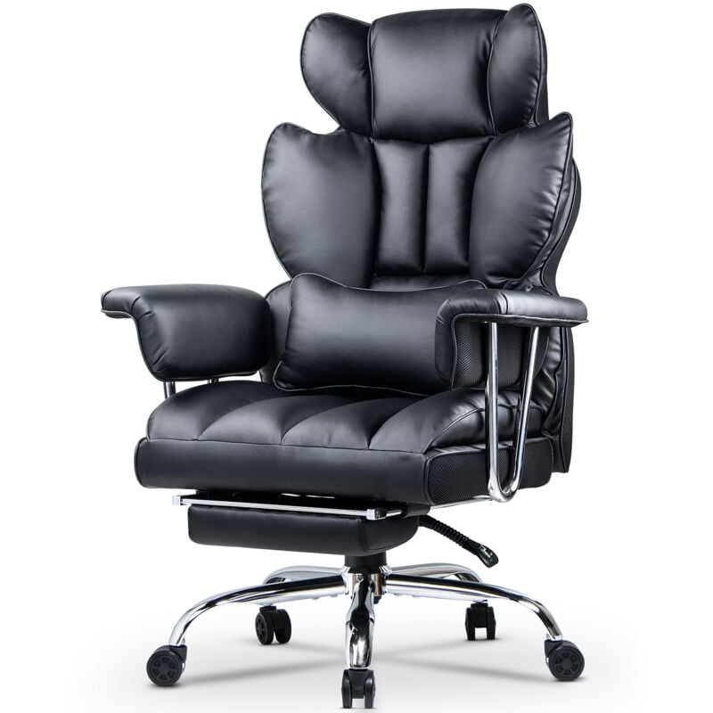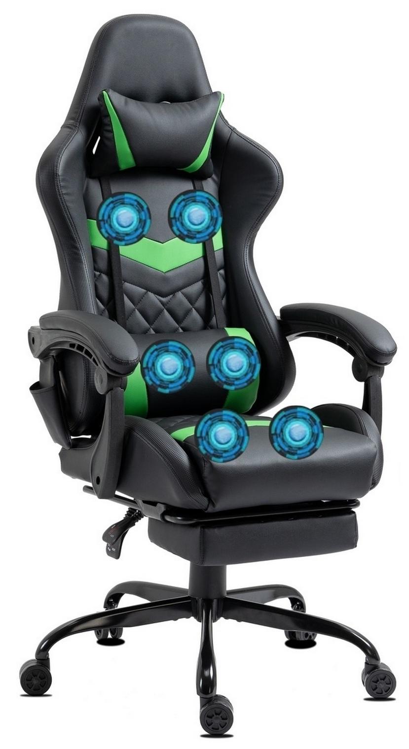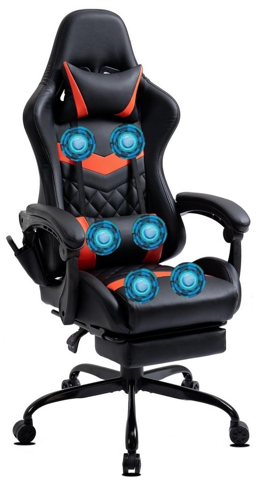 Chaise GamingChaise bureau avec Repose-pied Haut-parleur Bluetooth et Accoudoirs Synchronisés (Noir)