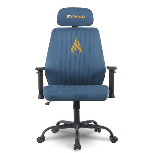 Symino Chaise de Bureau Ergonomique en Tissu Suédine, Fonction Inclinaison et Balancement 109°, Soutien Lombaire Intégré, Appui-Tête et Accoudoirs Réglables-Bleu