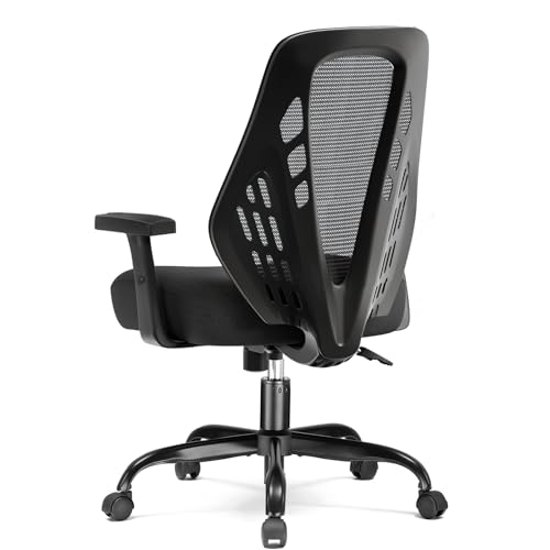 COMHOMA Chaise de Bureau Ergonomique avec accoudoirs réglables, Chaise de Jeu en Maille Respirante, Dossier en Forme de V, Fonction basculante, siège en Mousse Haute densité, Noire