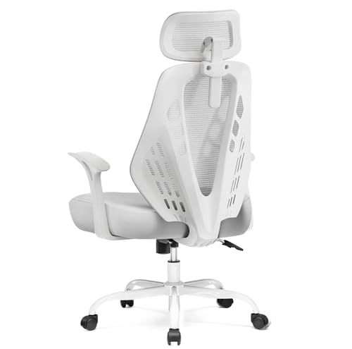 COMHOMA Chaise de Bureau Ergonomique avec appuie-tête, Maille Respirante, Dossier en Forme de V, réglable, Fonction basculante, siège en Mousse Haute densité, roulettes silencieuses, Gris